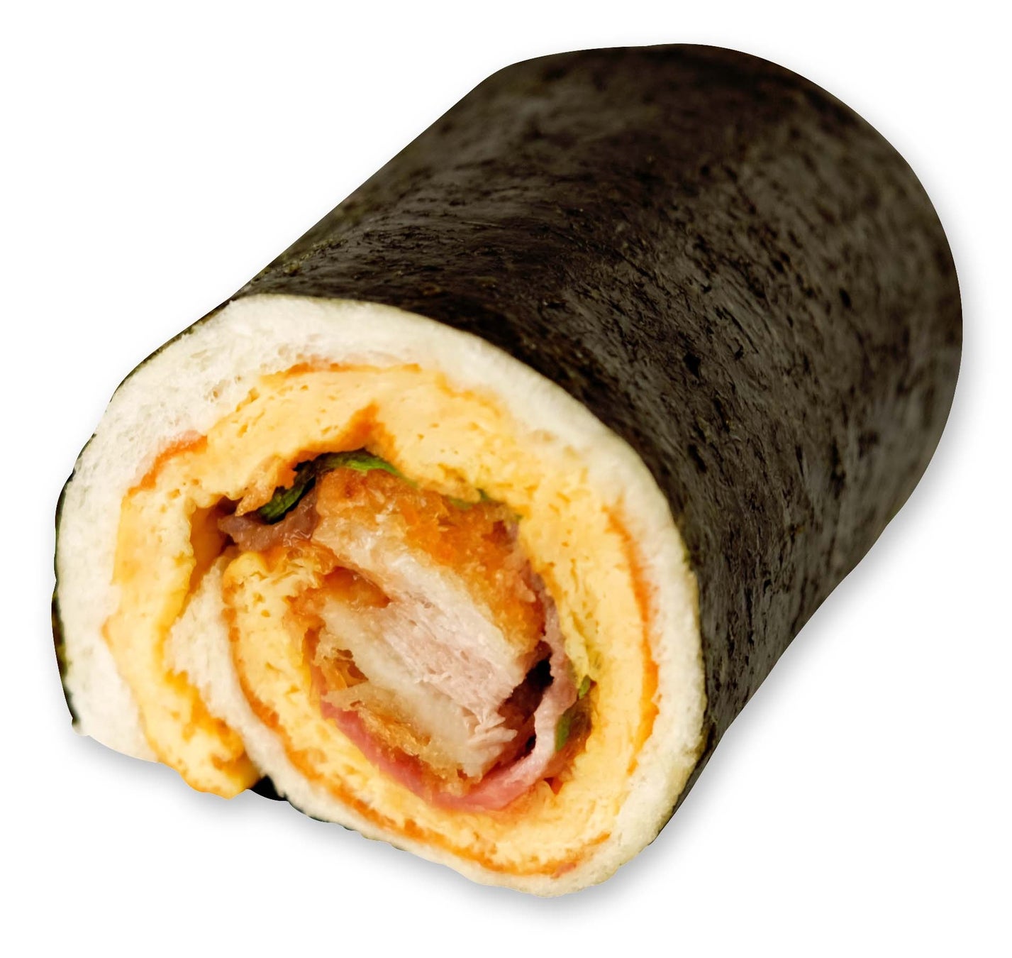 節分に「福を巻き込んでほしい」ととんかつ32gとローストビーフ15g、厚焼きたまごを大胆に海苔で巻き上げました。