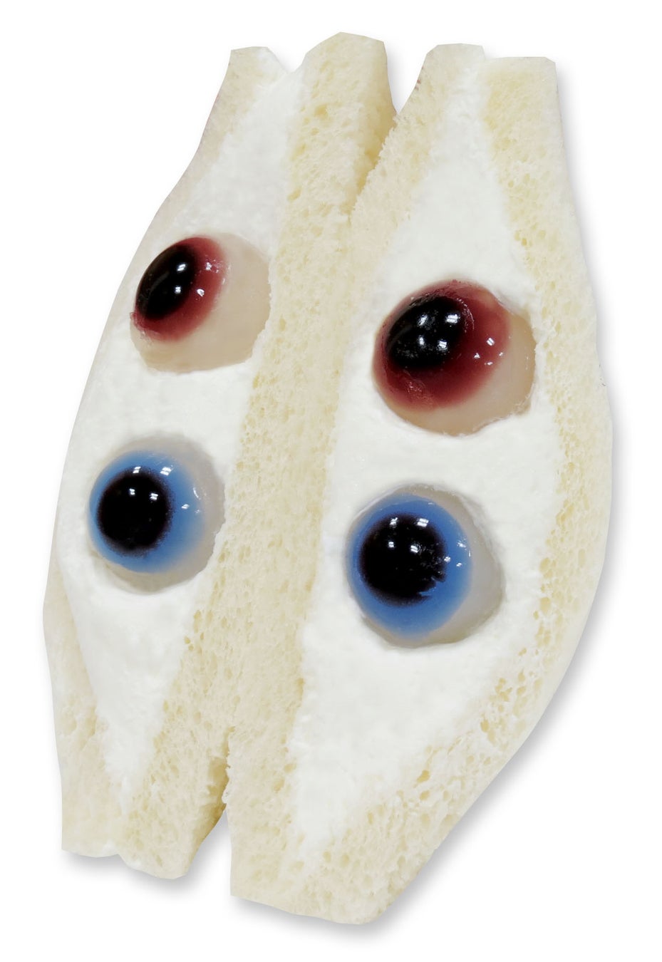 ハロウィン期間限定で販売。ダイヤ製パン特製の生クリームに、赤と青の目玉のゼリーを埋め込んだ、ビジュアルが少々不気味なサンドイッチです。