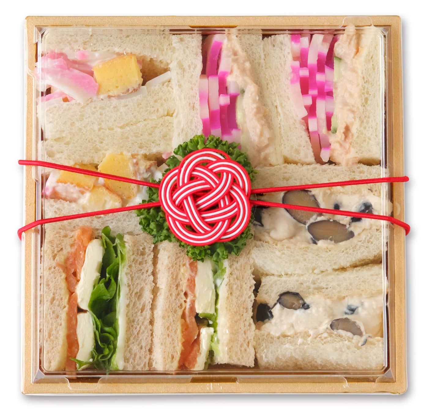 ダイヤ製パンで初めておせちサンドを作りました。専門学校とのコラボ商品で学生のアイデアをダイヤ製パンの職人たちが形にしました。おせちに使われる黒豆や酢蓮根などの具材を使いました。