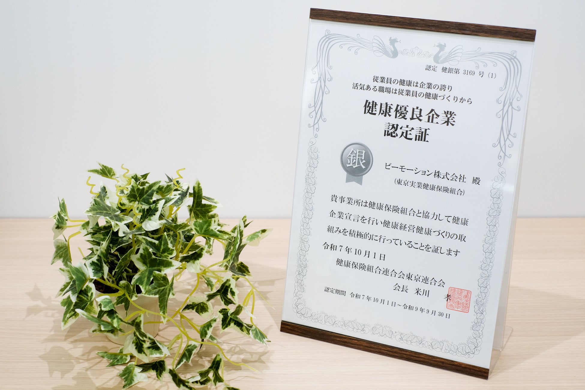 企業の販売・営業部門のアウトソーシング事業を展開するビーモーション株式会社(本社:東京都豊島区、代表取締役:伊藤 空、以下「ビーモーション」)は東京実業健康保険組合が実施する「健康企業宣言制度」において、健康優良企業『銀の認定』を継続して取得しました。