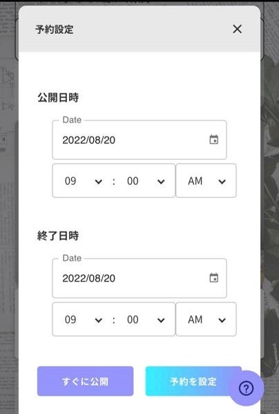 通常の投稿に公開・終了日時を設定するだけで、予約投稿が完了。