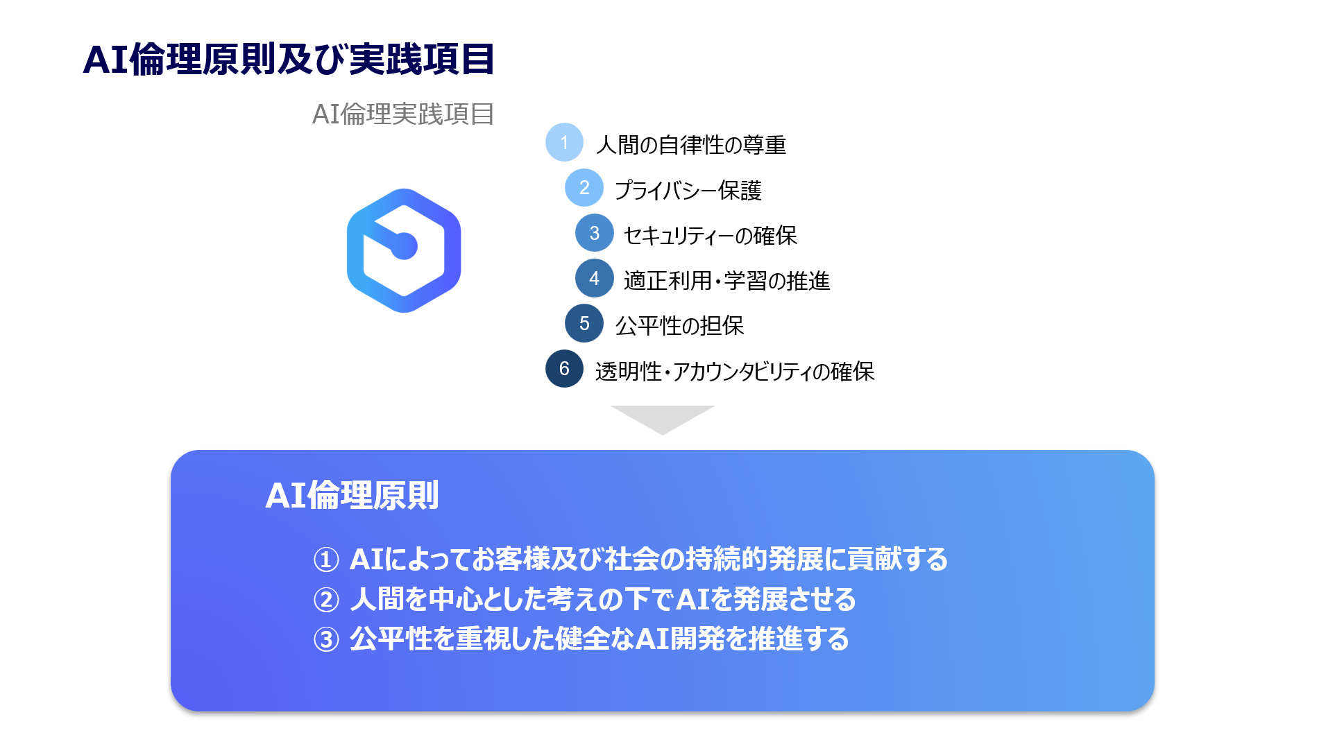 一方で、多様な場面でAIの活用が進み、かつAI自体の高度化が進むことにより、倫理面で様々な問題がもたらされるおそれがあるとも考えられ、世界的にAI倫理に関する議論が活発化しております。今後、当社が事業活動を進めてAI普及を図るにあたり、社会的に求められるAI倫理に準拠した企業活動を行うことは義務であると同時に、健全で高価値なAIの社会実装を進めるための必要条件であると認識しております。したがって、当社としてのAI倫理の基準を定めるとともに、その内容を外部公表することによってお客様や取引先の皆様と認識を合わせることが必要であると考えるに至り、この度当社としてのAI倫理原則とその実現のための実践項目を策定・公表することといたしました。