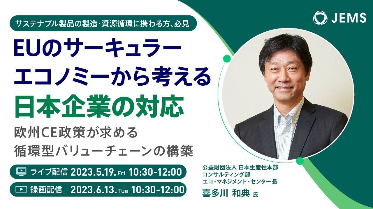 「EUのサーキュラーエコノミーから考える日本企業の対応」無料オンラインセミナーを5/19(金)、6/13(火)に開催します
