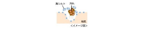 沖縄の海底に堆積する数百年前の海泥。毛穴のサイズより小さな0.007mm以下のマイナス電荷を帯びた微粒子で、毛穴に詰まった汚れ(プラス電荷)を吸着し、除去します。
