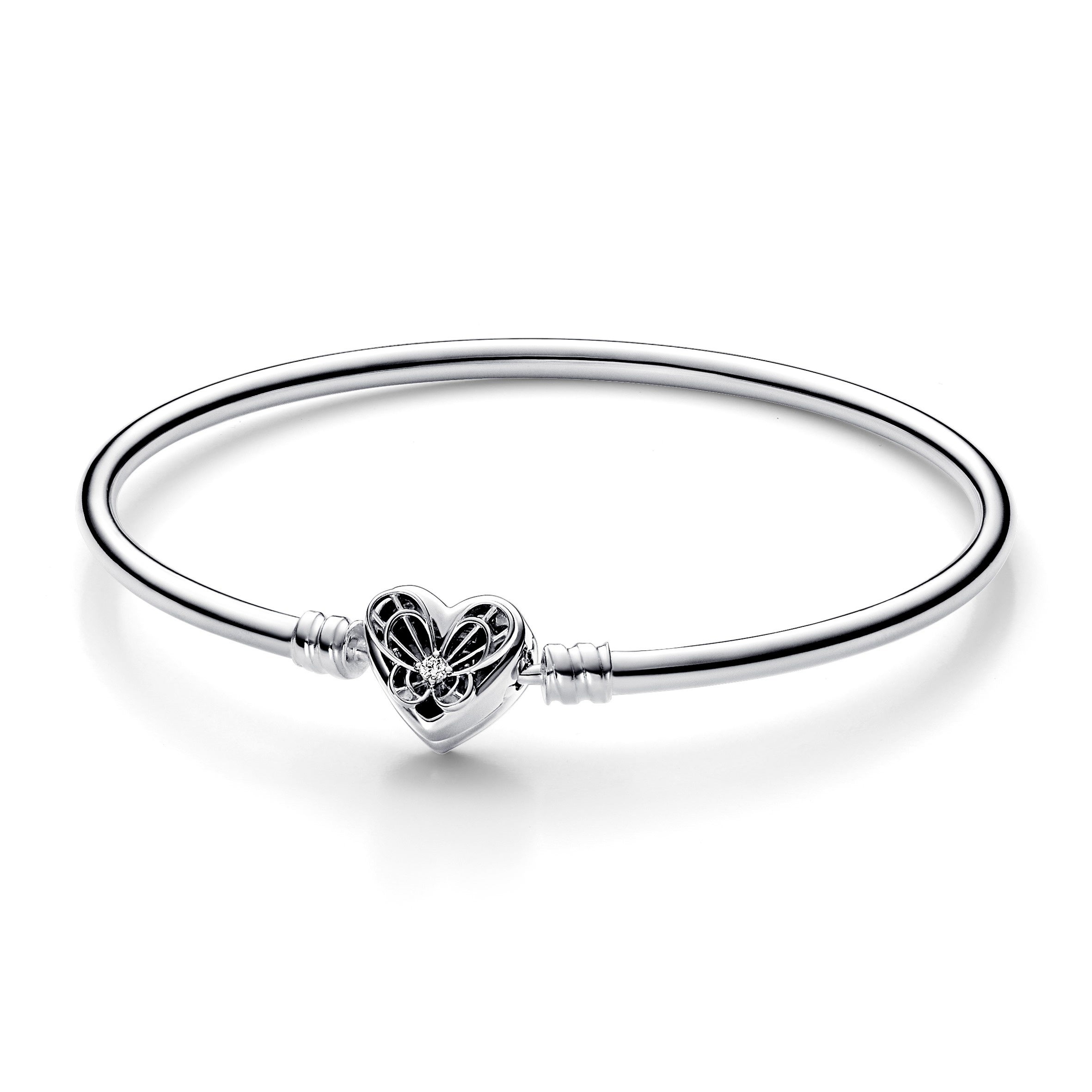 オープニング特典として、4月18日(金)~20日(日)までの3日間、パンドラ製品を1点以上ご購入のお客様に先着でPandora Momentsのバングル(非売品)をプレゼントいたします。本スターリングシルバー製のバングルは、ハートモチーフのクラスプに蝶の羽の模様が施されたデザインです。Pandora Momentsのチャームをカスタマイズするベースとしてお使いいただけます。