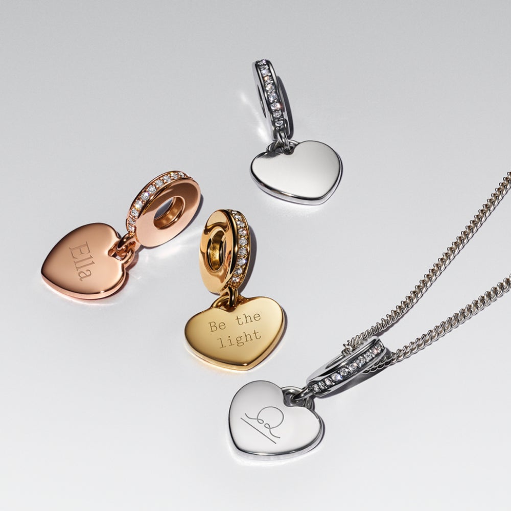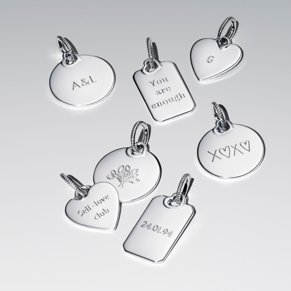 刻印可能な製品には、チャームやブレスレット、クラスプなど約20種類が、スターリングシルバー、ゴールドプレーティング、ローズゴールドプレーティングの3種類のカラーで揃います。フォントやシンボルを組み合わせたり、タッチペンを使って手描きの絵を刻印したりと、自分だけのスタイルを作ることができ、友人やパートナーとの思い出作りや、ご家族、大切な人への贈り物としてもご利用いただけます。