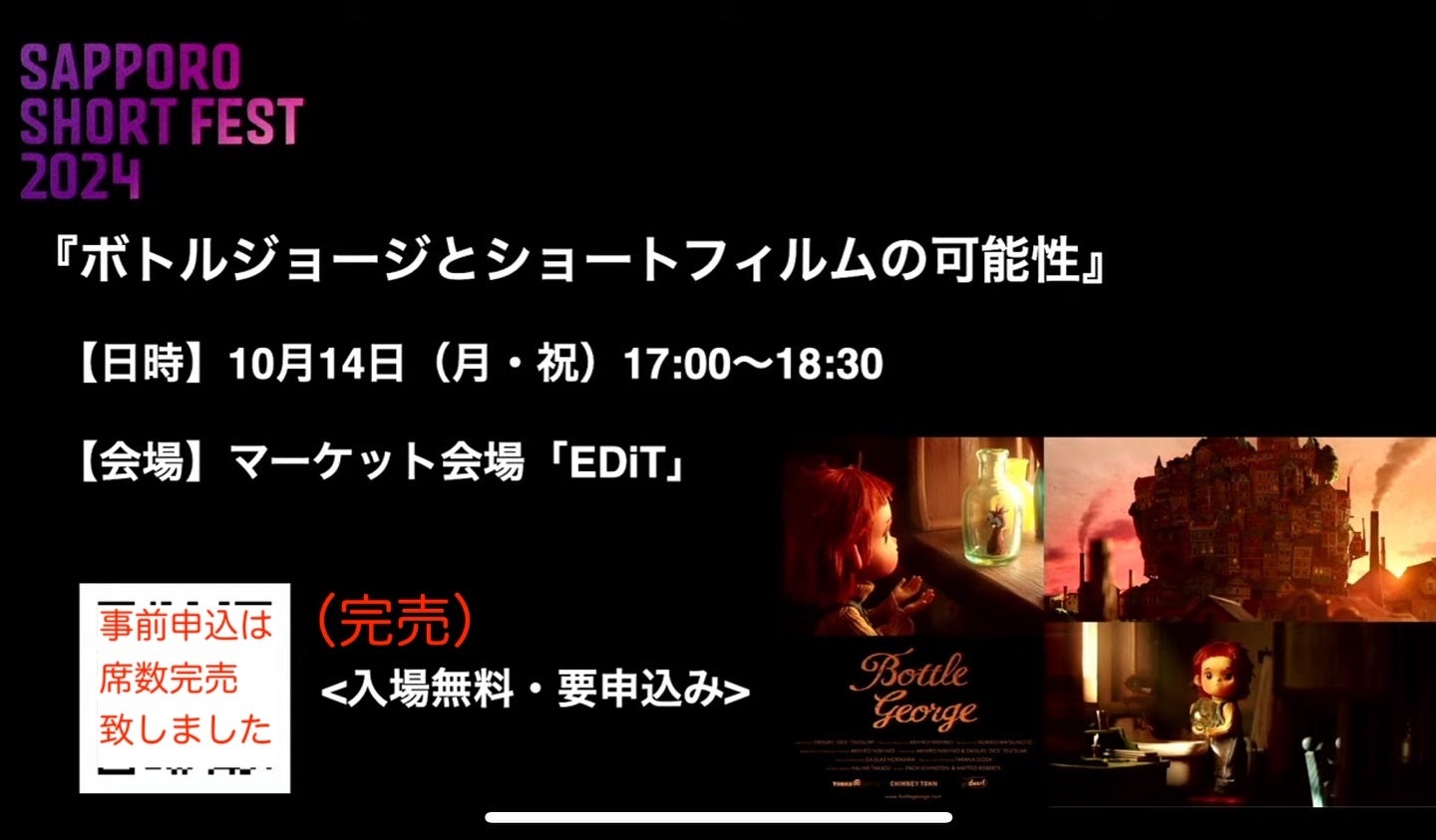 第19回札幌国際短編映画祭、最終日10月14日(月祝)はマーケット会場で注目のイベントを2つ開催、受賞作品『ボトルジョージ』(日本初公開)はアワードプログラム(B)で再上映!(会場:サツゲキ)