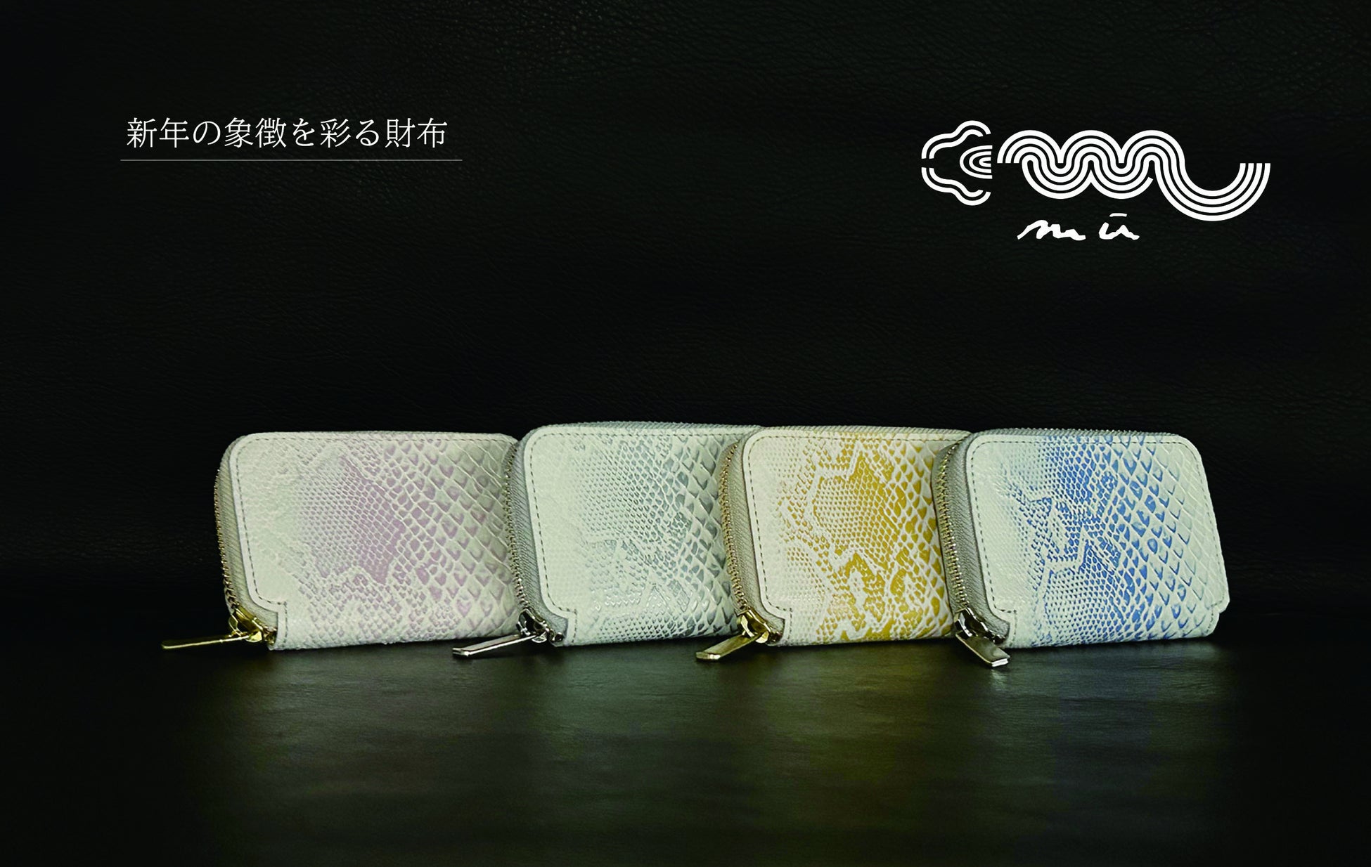 来年の干支であり、存在が珍しく金運にも良いとされる白ヘビをテーマにして作ったお財布です。錦ヘビの型押しを施したアドバンレザー(※1)を使い特殊な加工で白の下に色を隠しており、磨くことで中の色が姿を現します。絶妙なバランスで磨かれ綺麗に鱗の一つ一つから漏れ出たように見える独特な白と他色とのコントラストをお楽しみください。形は多くのシリーズで採用されている定番の極小財布。様々な場面で使える人気の形です。