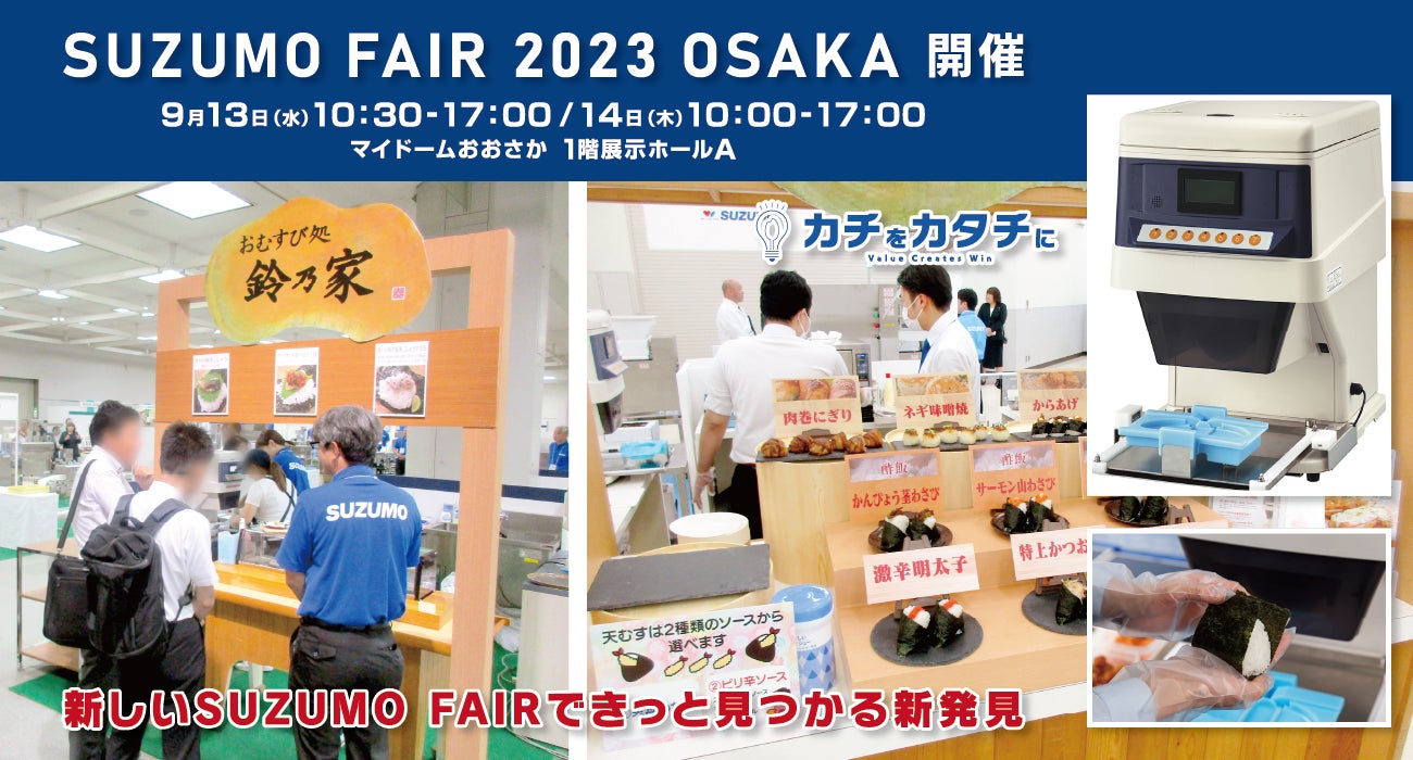鈴茂器工株式会社(本社:東京都中野区、代表取締役社長:鈴木美奈子、以下 鈴茂器工)は、2023年9月13日(水)、14日(木)の2日間でスズモフェア2023大阪 【開催地:大阪市 マイドームおおさか 1階展示ホールA】 を開催いたします。2023年8月7日より来場事前予約の受付を開始しており、すでに多くのお客様よりお申込みをいただいておりますが、今回は展示会の目玉となる展示内容についてお知らせいたします。外食・中食・ホテル・給食関係のお客様およびメディア関係者の皆様のご来場予約を心よりお待ちしております。