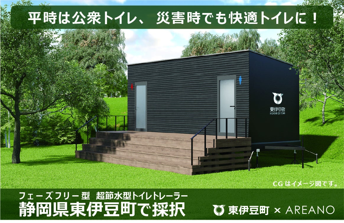 トレーラーハウスの製造・販売を通じて地域の課題解決に取り組む株式会社エリアノ(本社:東京都千代田区)は、静岡県東伊豆町が実施した「令和7年度(令和6年度新しい地方経済・生活環境創生交付金)東伊豆町災害用トイレトレーラー購入に係る公募型プロポーザル」の事業者に採択されたことをお知らせします。