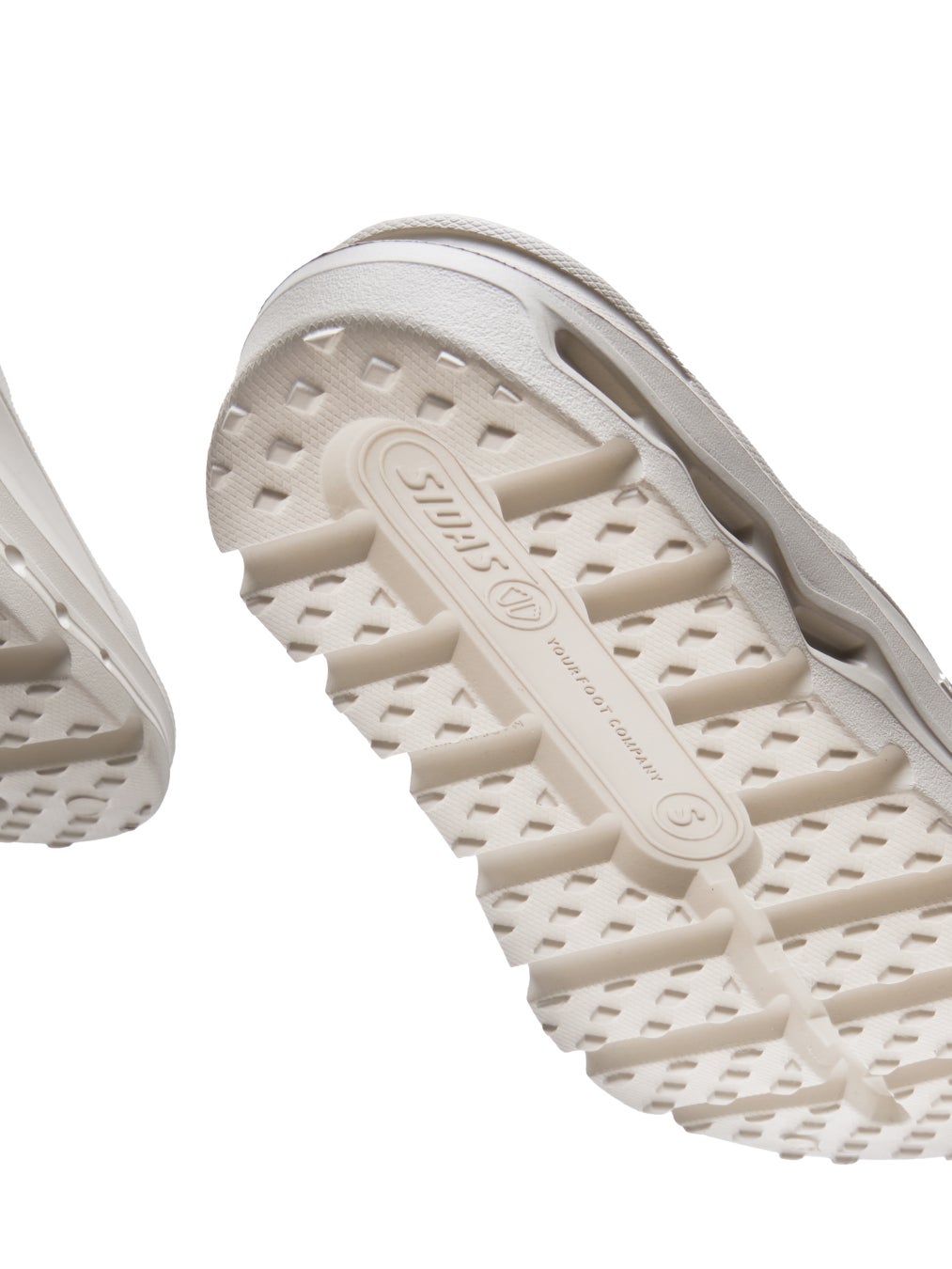 一般的なリカバリーシューズは柔らかさを重視し、足を包み込む快適さを提供してきました。しかし、長時間の歩行では足が沈み込みすぎることで、十分なサポートが得られにくいという課題もあります。そういった中、シダスジャパンは、長年にわたりアスリートの足を支え、アーチサポートを研究してきた実績を活かし、“支えることで、真のリカバリーを”という新発想のもと、履いて休むだけでなく歩いて整える次世代のリカバリーサンダルを開発いたしました。