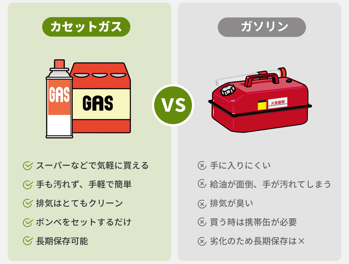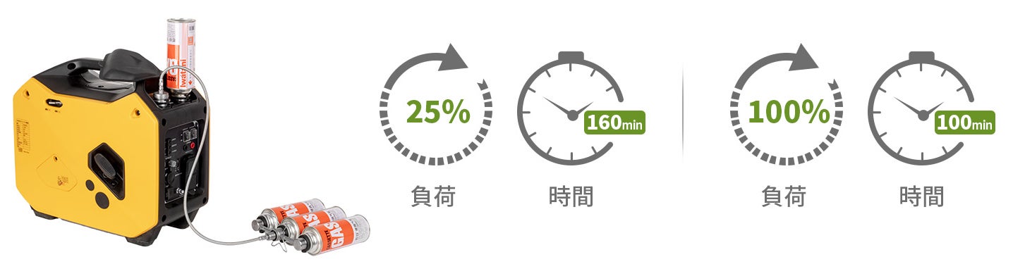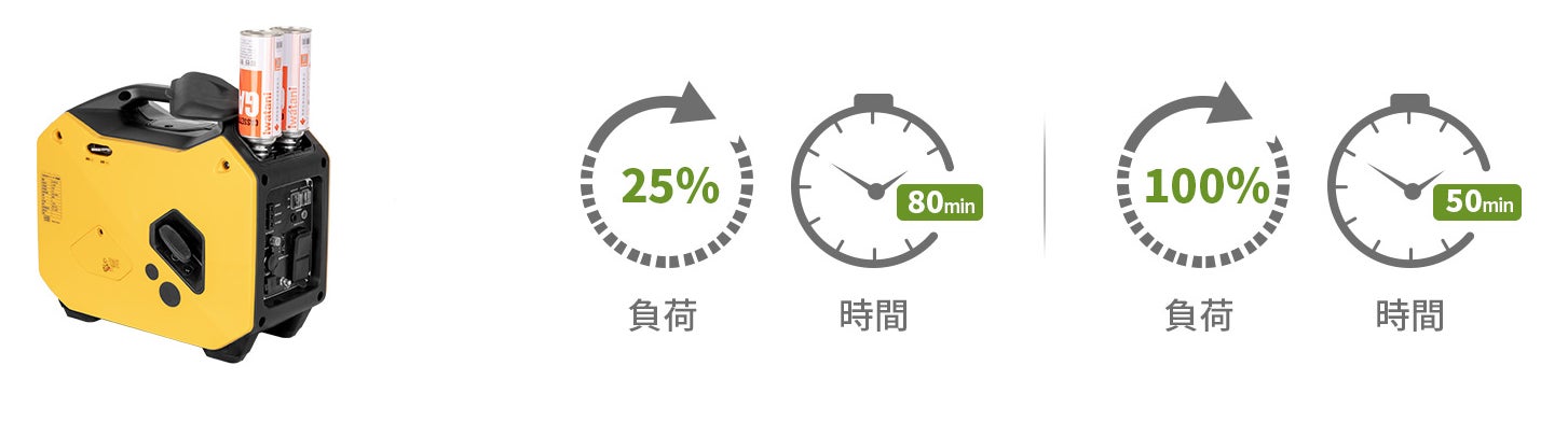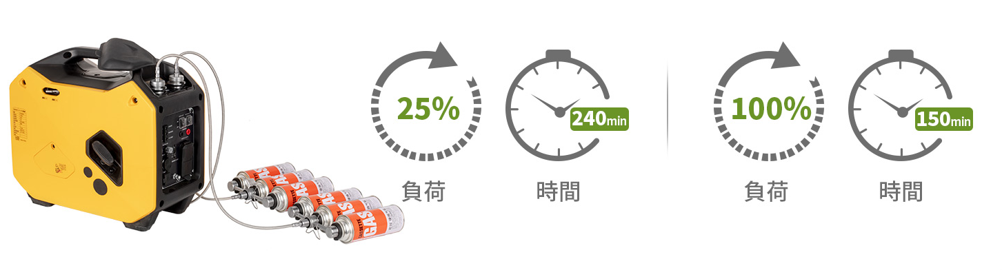 燃料タンク容量:カセットボンベ ×2本(増設可)