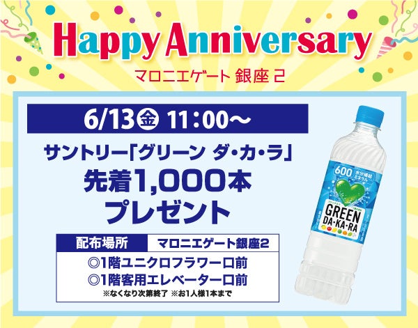 株式会ファーストリテイリングが運営する商業施設「マロニエゲート銀座2」において、UNIQLO TOKYOが6月19日に開業5周年を迎えることを記念して、6月6日(金)~6月30日(月)までの期間、「Happy Anniversary」を開催します。