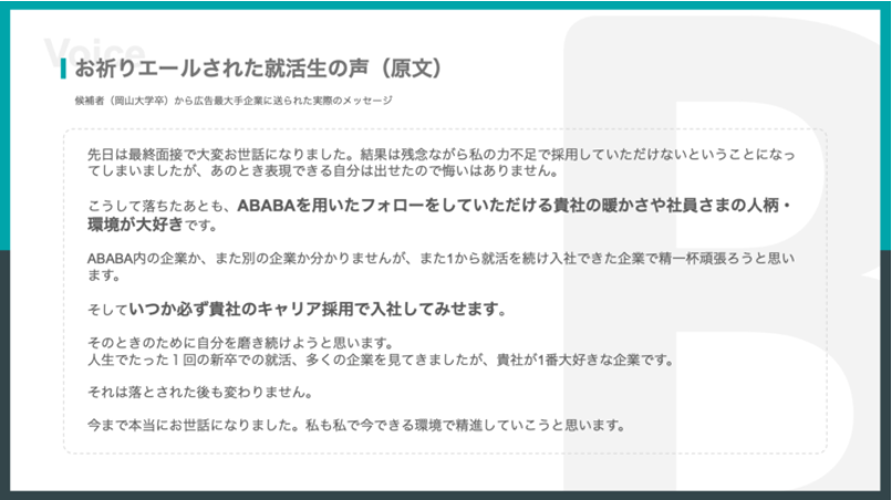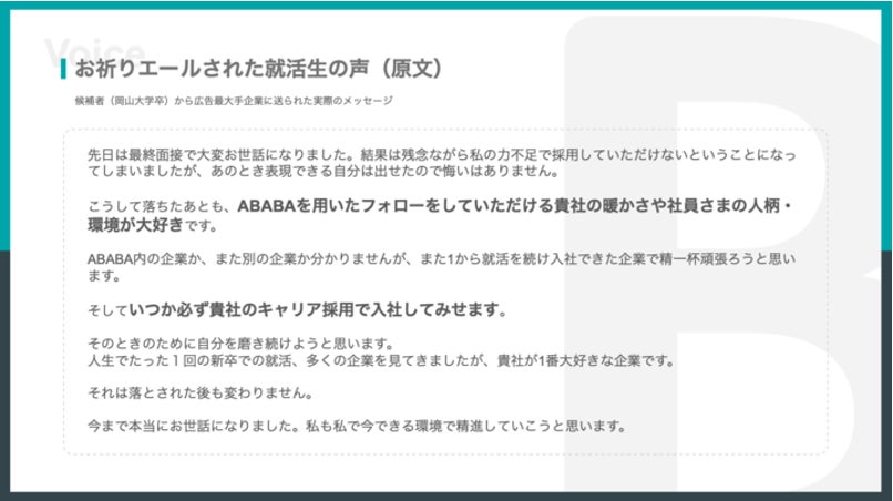 ―不採用通知の在り方を変革 候補者の今後を「エール」する。―