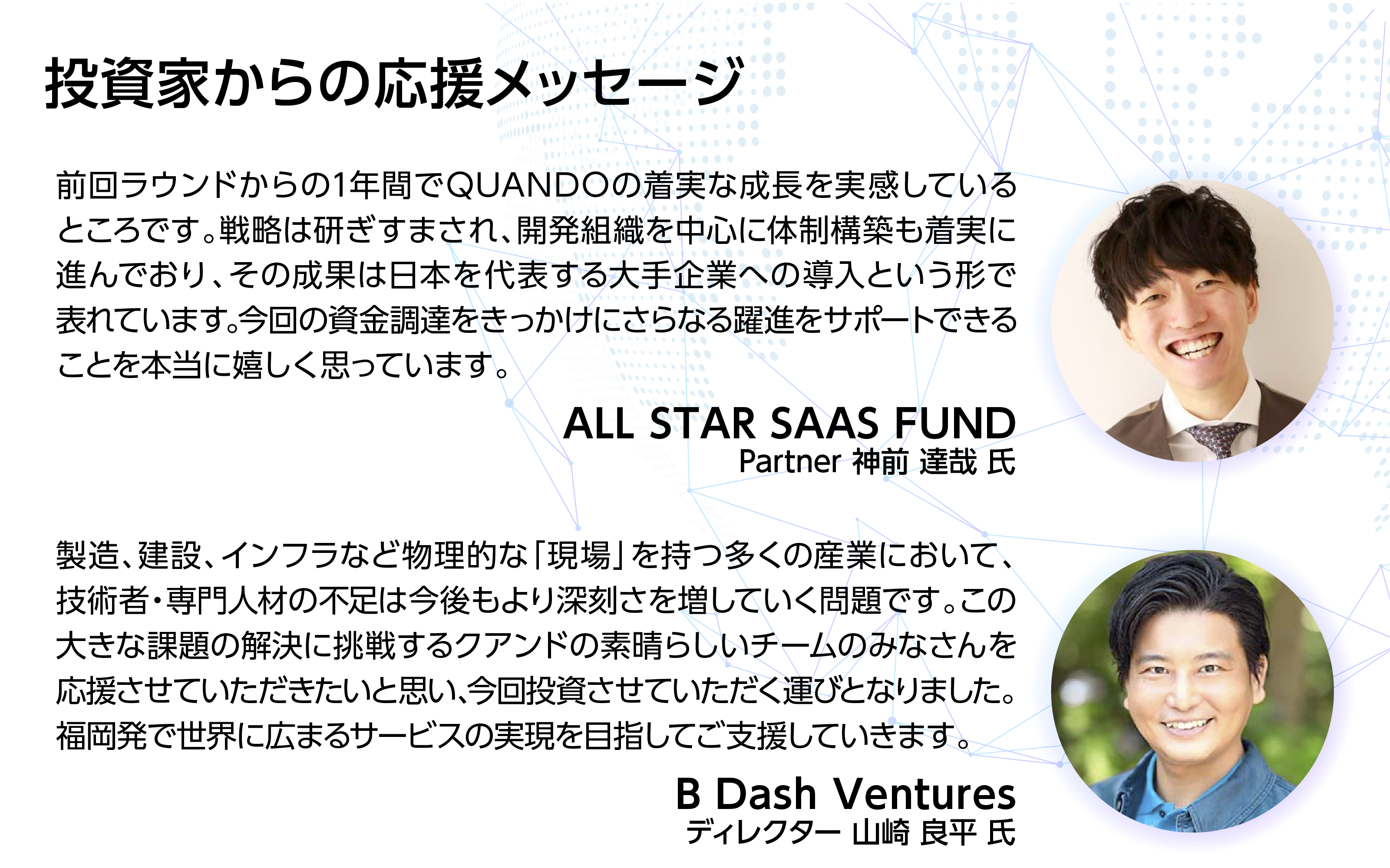 こちらの記事には今回出資していただいたすべてのVC・個人投資家の情報やコメントを掲載しています。