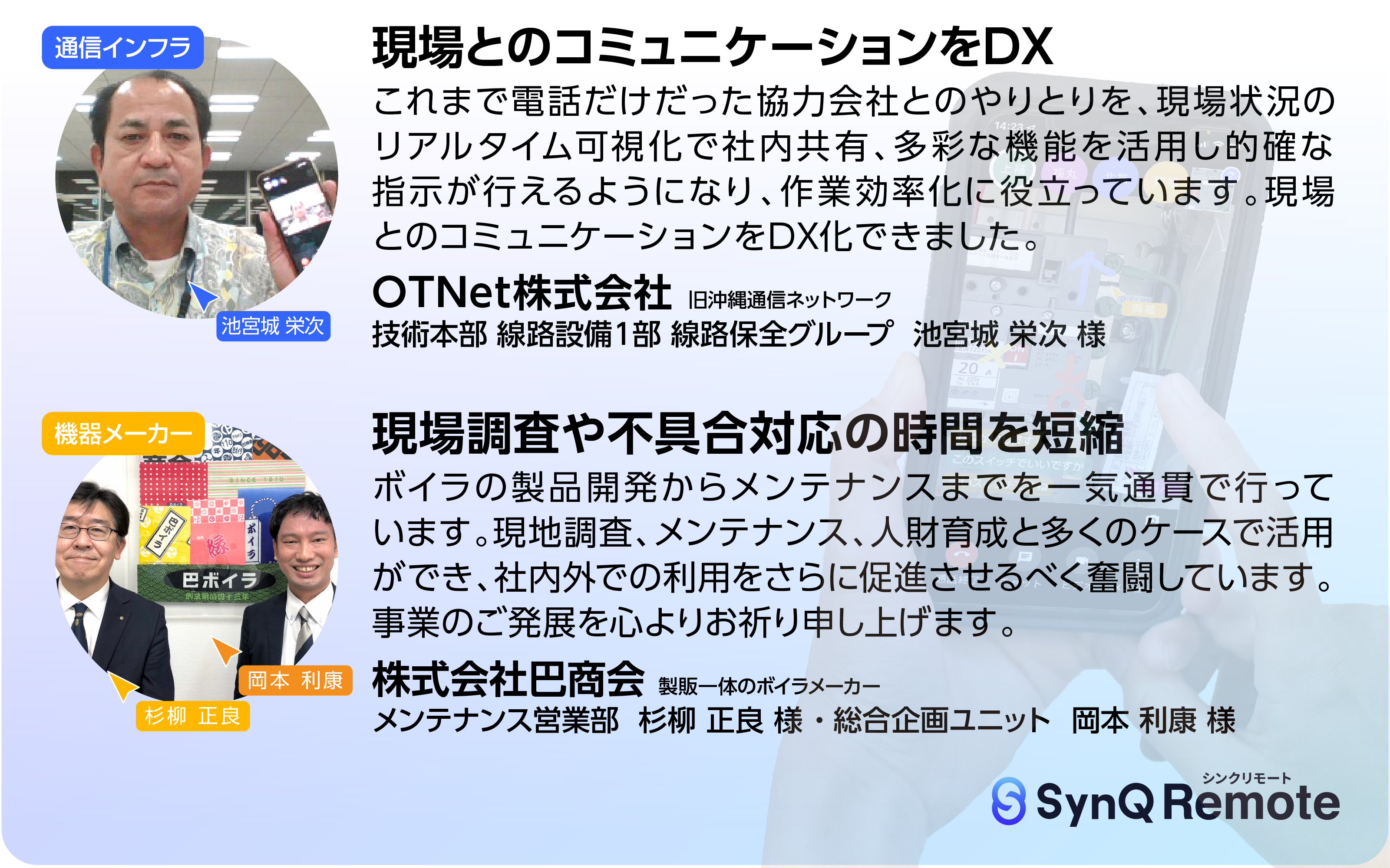 「現場とのコミュニケーションをDX」SynQ Remote(シンクリモート)導入企業の声