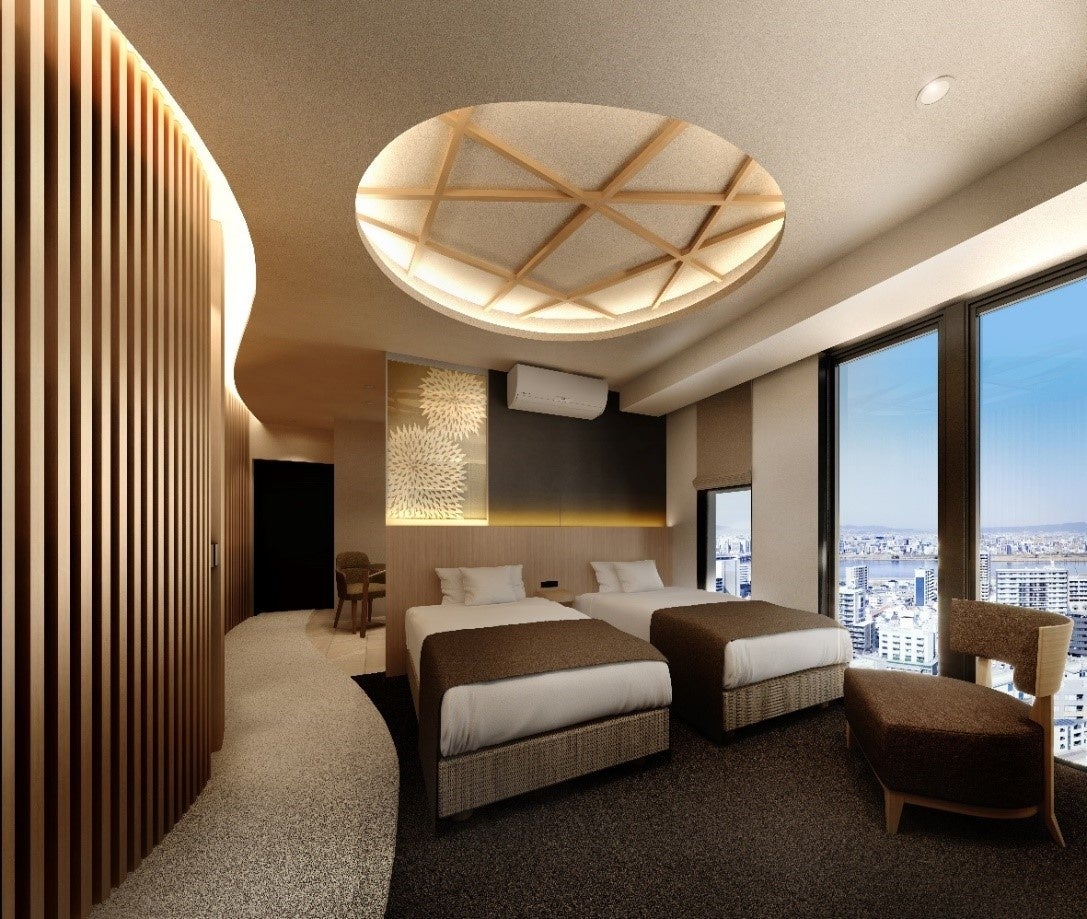 ・ゲストルーム 木調ルーバーや照明などで優美な空間に設えました。