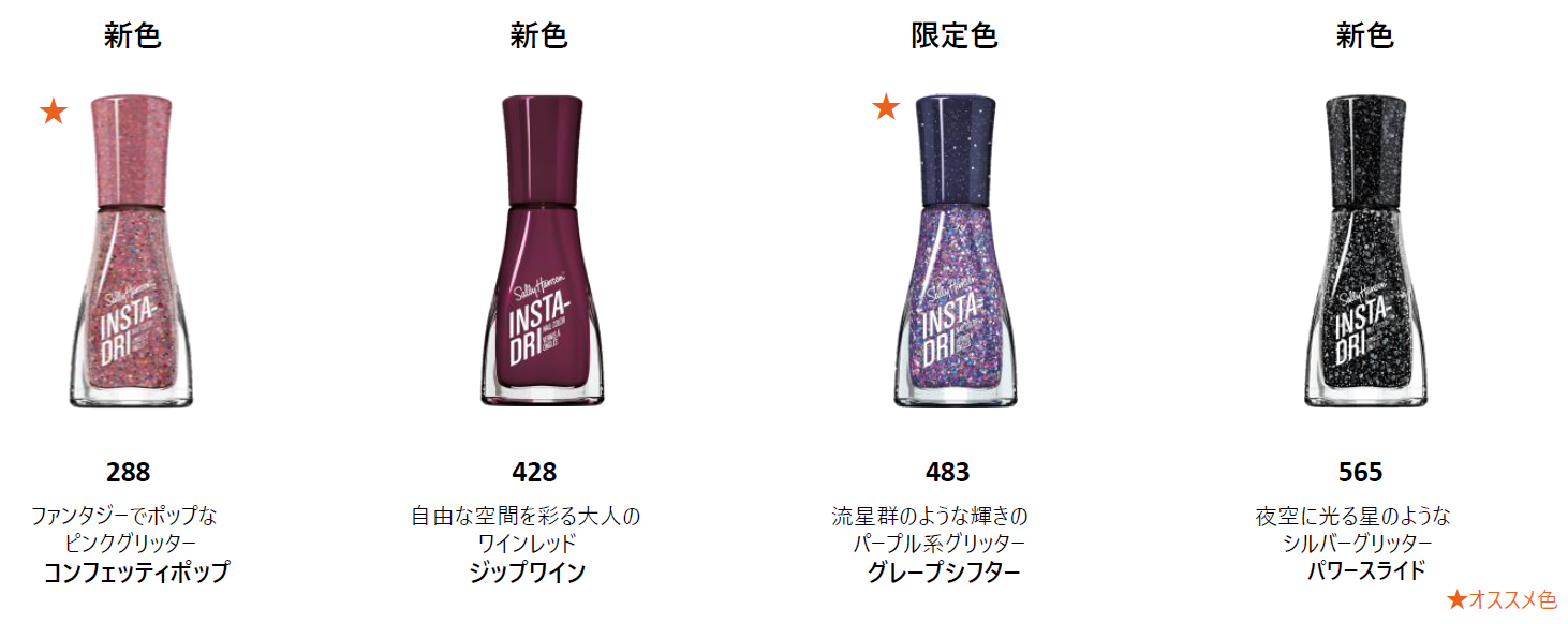 コティジャパン合同会社は、全米売上No.1 ネイルブランド*<サリーハンセン(Sally Hansen)>から、<インスタドライ ネイルカラー>の新色3 色・限定色 1 色を 2023 年 12 月 1 日 (金)に発売いたします。