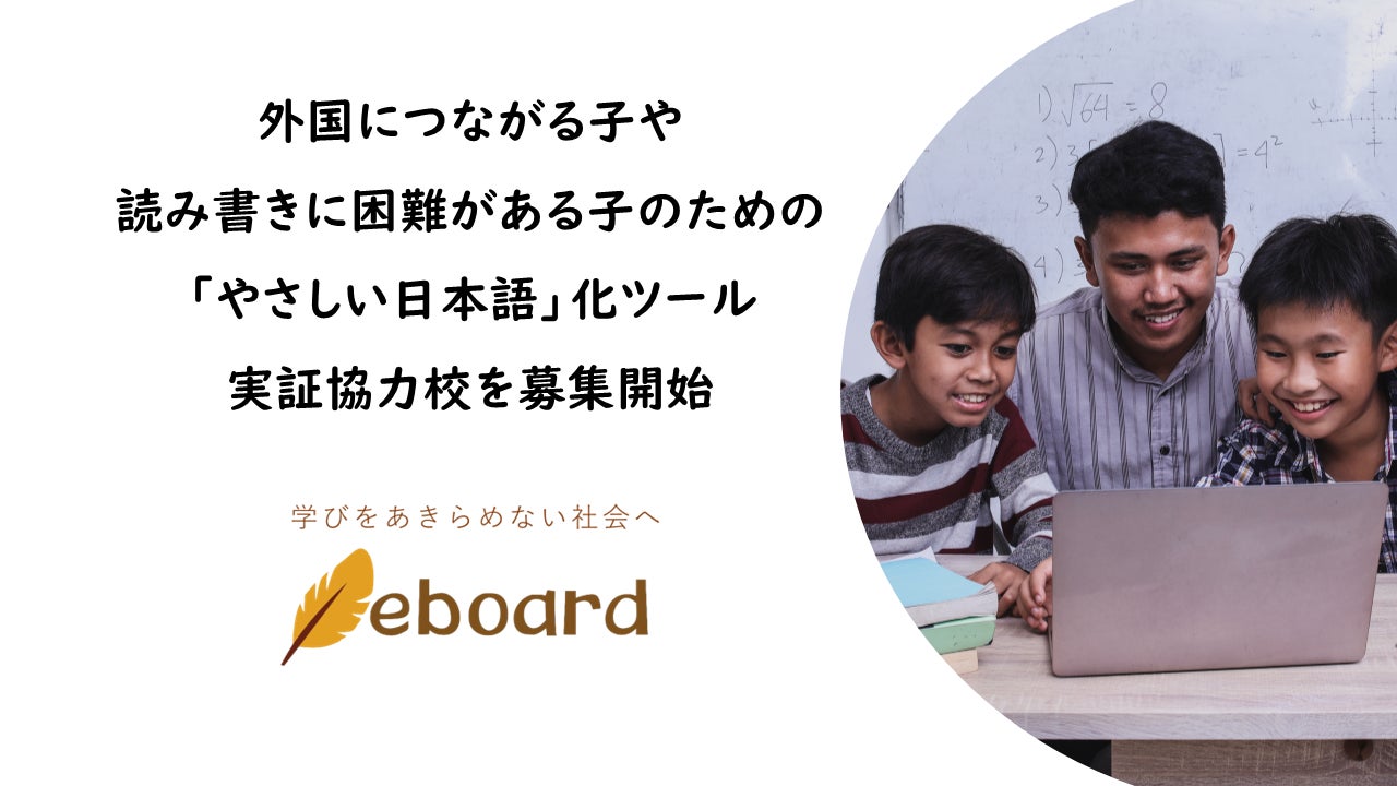 NPO法人eboard、外国につながる子や読み書きに困難がある子のための「やさしい日本語」化ツール実証協力校を募集開始