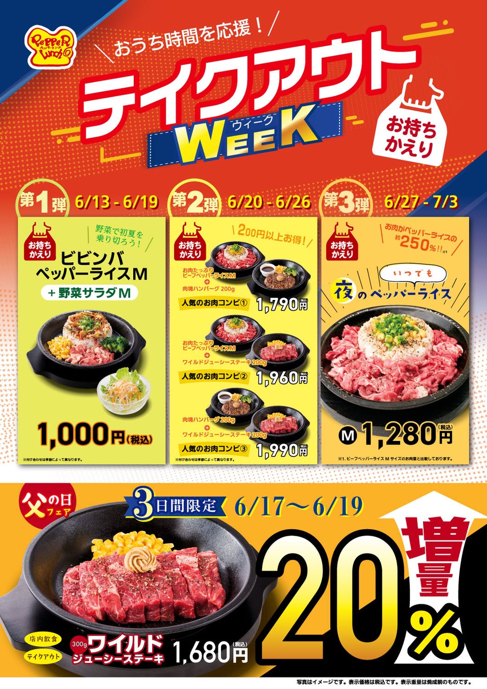 【6月のペッパーランチはこれ!】人気のワイルドジューシーステーキがお得になる父の日フェア&テイクアウトWEEKを開催いたします。