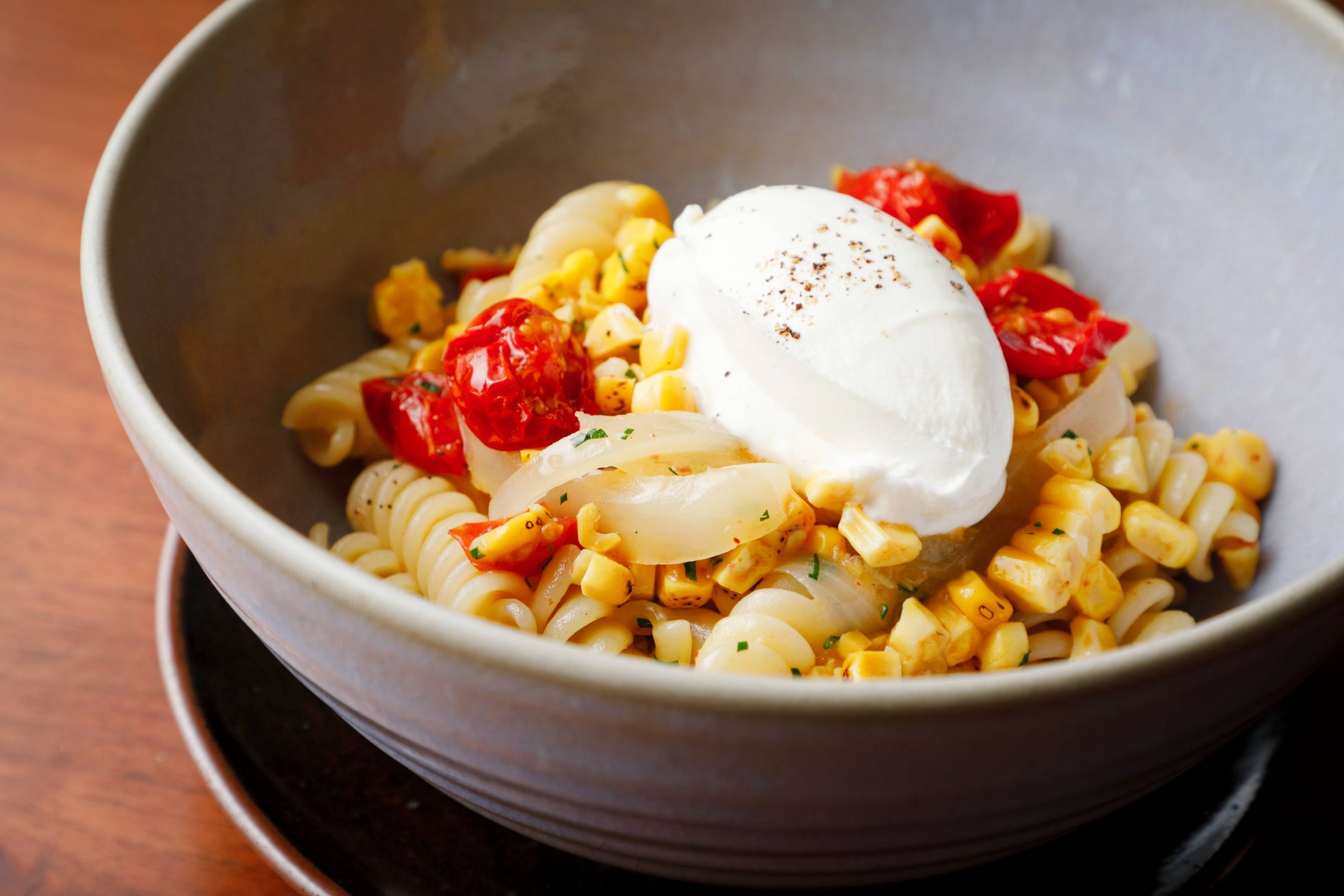ガーリック、唐辛子の旨味を引き出したソースにセミドライトマトを加えたオリジナルのアラビアータは、唐辛子のシャープな辛さが暑い夏にも食欲を掻き立てます。焼きとうもろこしとリコッタチーズをたっぷりとあしらい、夏ならではのプレゼンテーションに。リコッタチーズを混ぜあわせるごとにクリーミーな味わいへと変化していく様を楽しみながらご堪能ください。