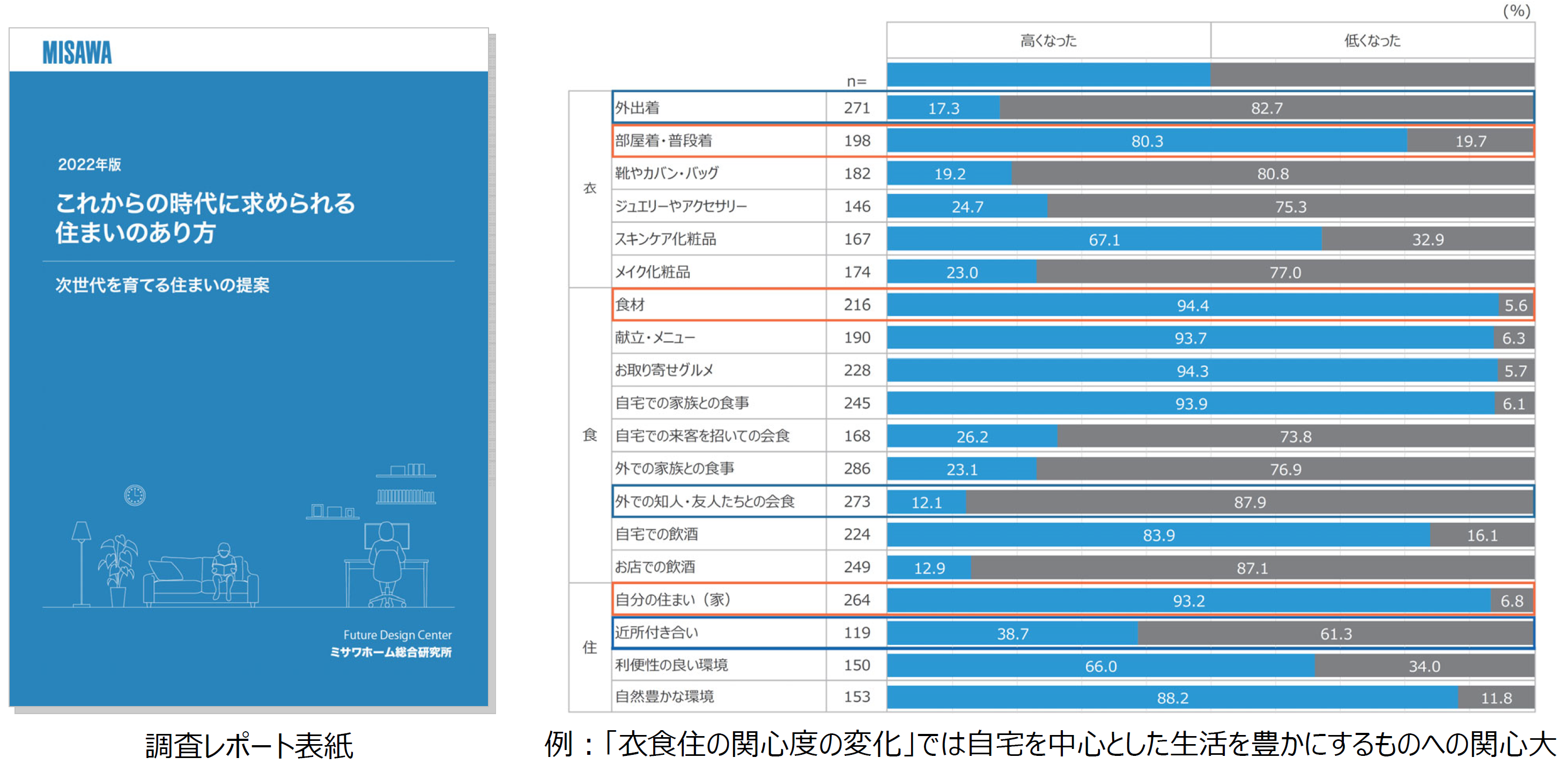 ミサワホームグループのシンクタンクである株式会社ミサワホーム総合研究所(本社 東京都杉並区/代表取締役社長 千原勝幸)は、withコロナ、afterコロナに求められる住まいや子育ての環境を考える目的で、コロナ禍を通じて生活者に起こった意識変化、および感染症に罹患した家族が感じた住まいの困りごとについて調査を実施。2つの調査結果とあわせて、次世代を育てる住まいの提案について、「これからの時代に求められる住まいのあり方」としてまとめましたので報告します。
