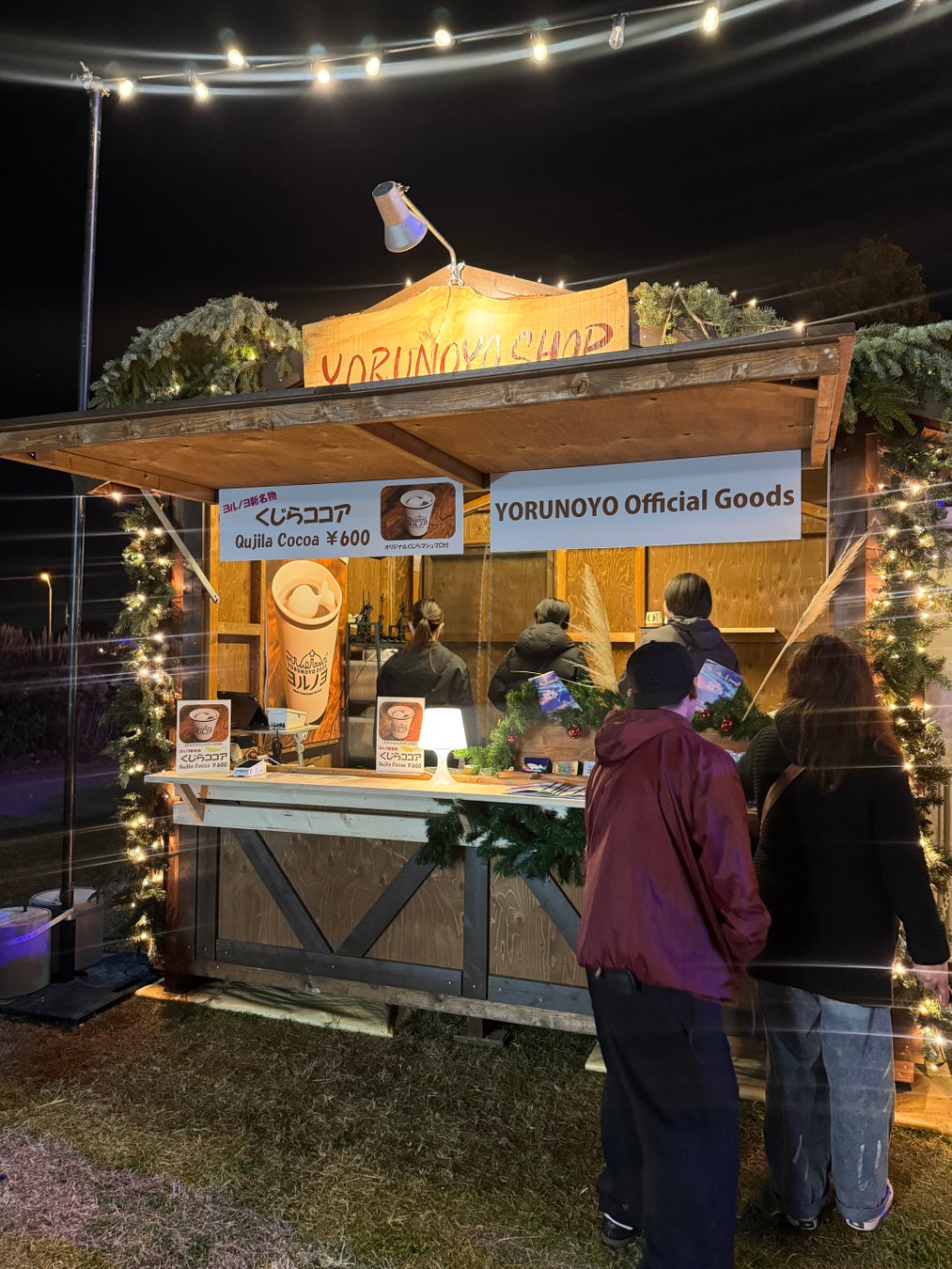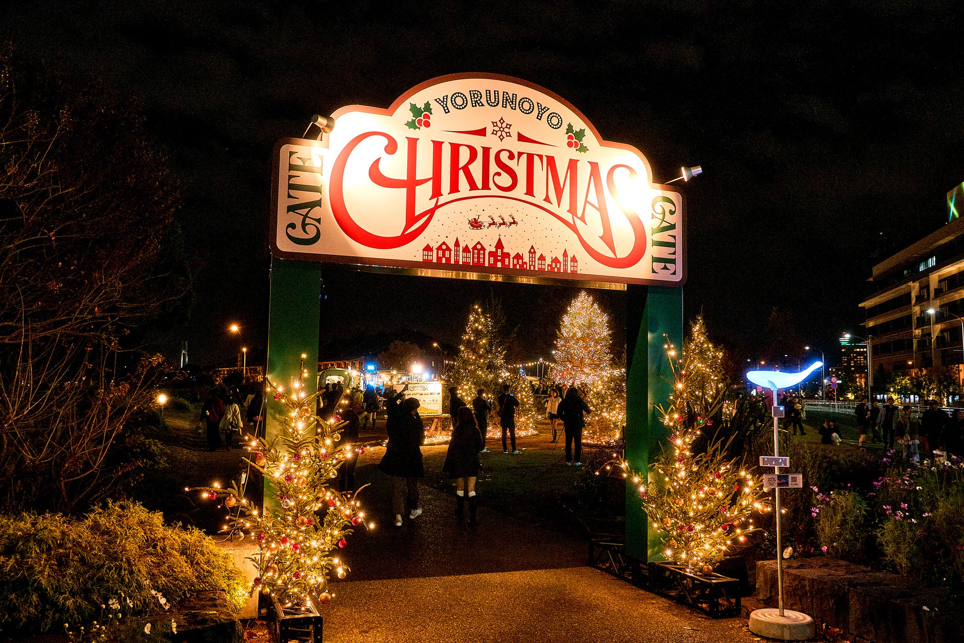 横浜赤レンガ倉庫とのコラボレーションによる新エリア「Christmas Gate」が「新港中央広場」に登場。会場入口では、ヨルノヨとコラボしたゲートが来場者を迎え、ヨルノヨグッズや特別メニューを販売するヒュッテ(木の小屋)も登場するほか、大さん橋にも登場する“くじら”のオーナメントが、立ち並ぶツリーに飾られています。