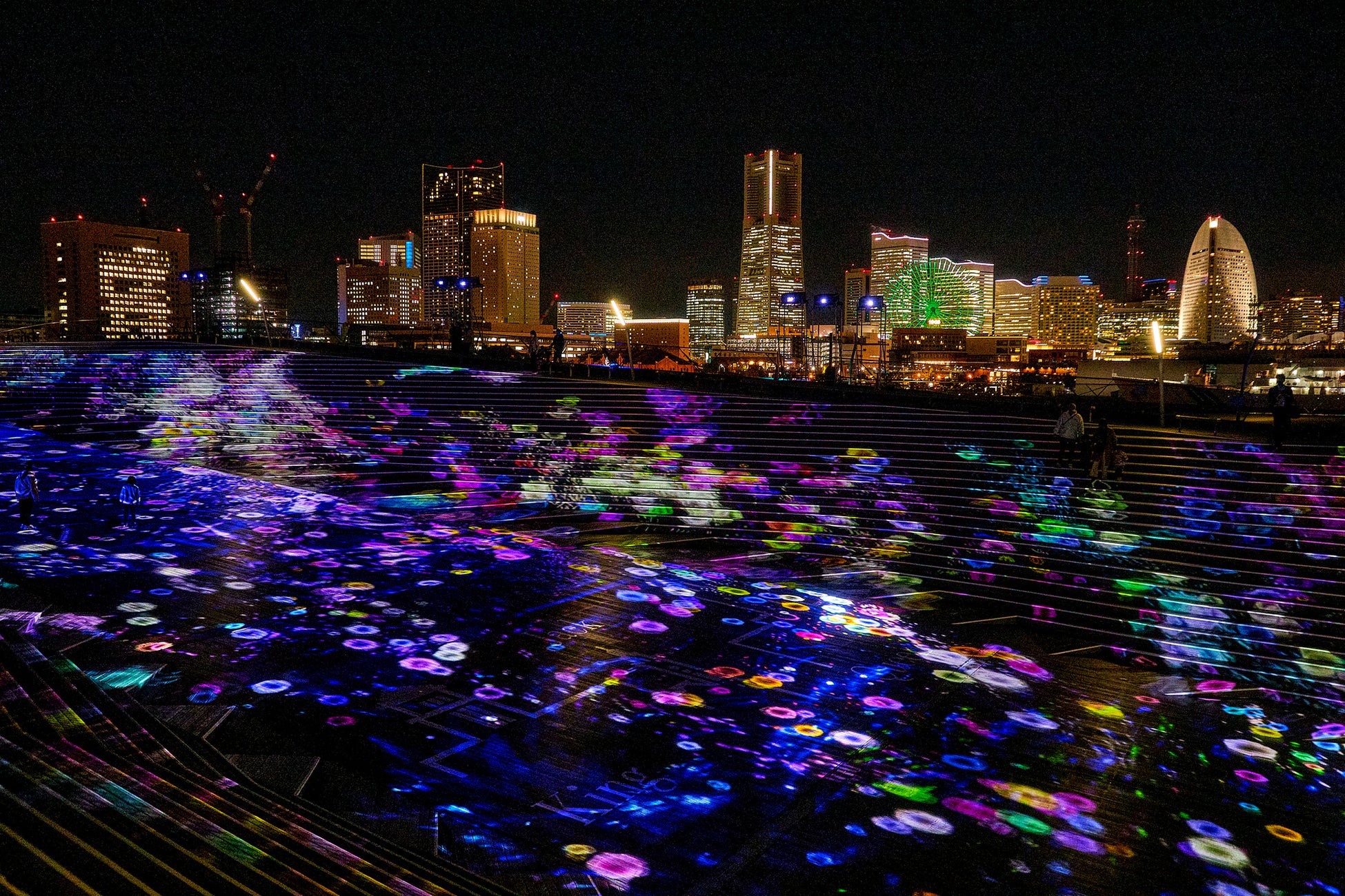 みなとみらいから山下公園までの3km以上にわたる街を舞台に、過去最大46施設の参加により、圧倒的なスケールで繰り広げられるスペクタクルショー。港の夜景とともに、光と音楽が響きあう特別な瞬間<ハイライト・オブ・ヨコハマ>を、ぜひご覧ください。