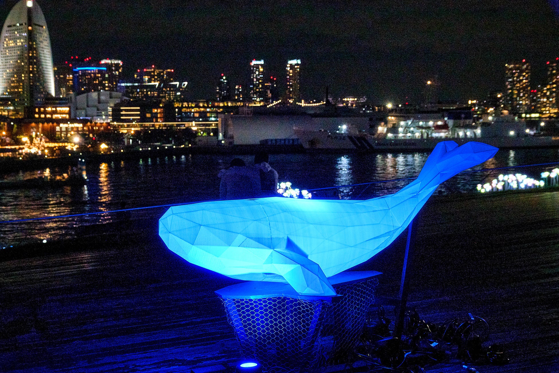今年のテーマは「花」!華やかに46の施設が光と音楽で連動する圧巻のスペクタクルショーや、25メートルに及ぶくじらのプロジェクションマッピングも