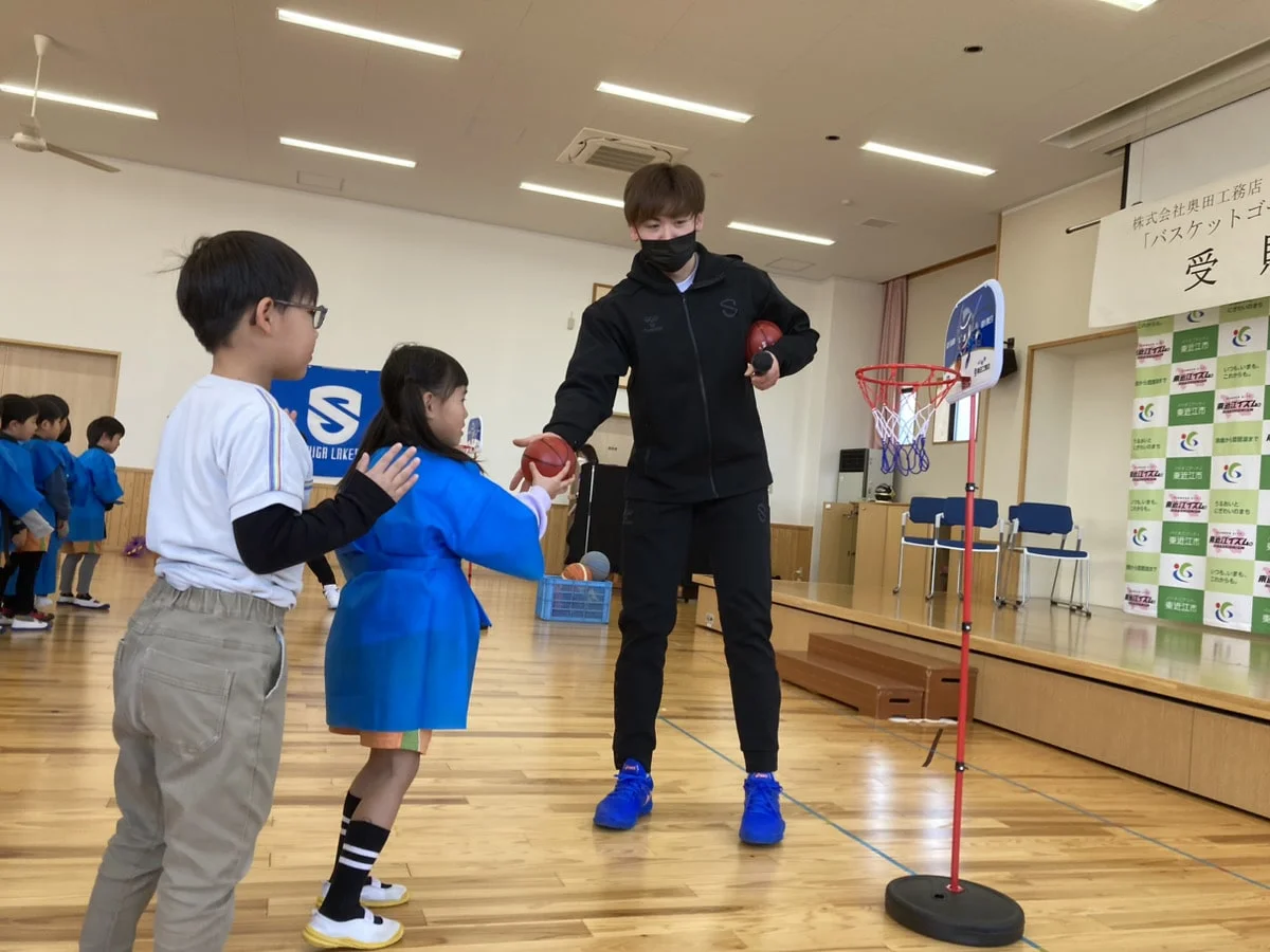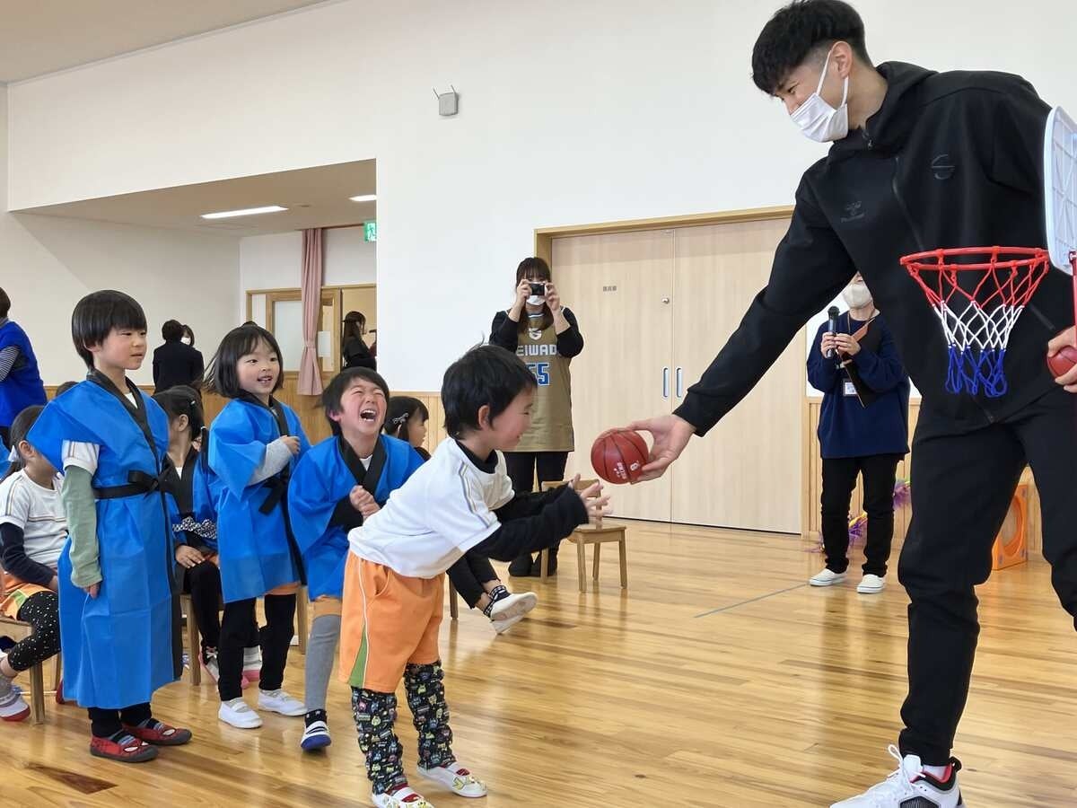 寄贈式後には杉浦選手、星野選手が園児たちと一緒にバスケットゴールを使って交流し、楽しい時間を過ごしました。