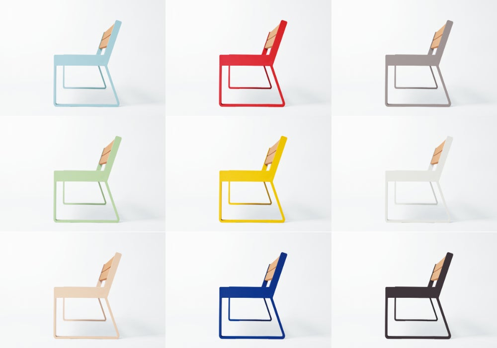 「ノイラウム」の製品は、過剰な装飾を排除した機能性を突き詰めたデザインと豊かな色彩が特徴。3色の再生木材と9色のアルミニウム製フレームを自由に組み合わせることが可能です。