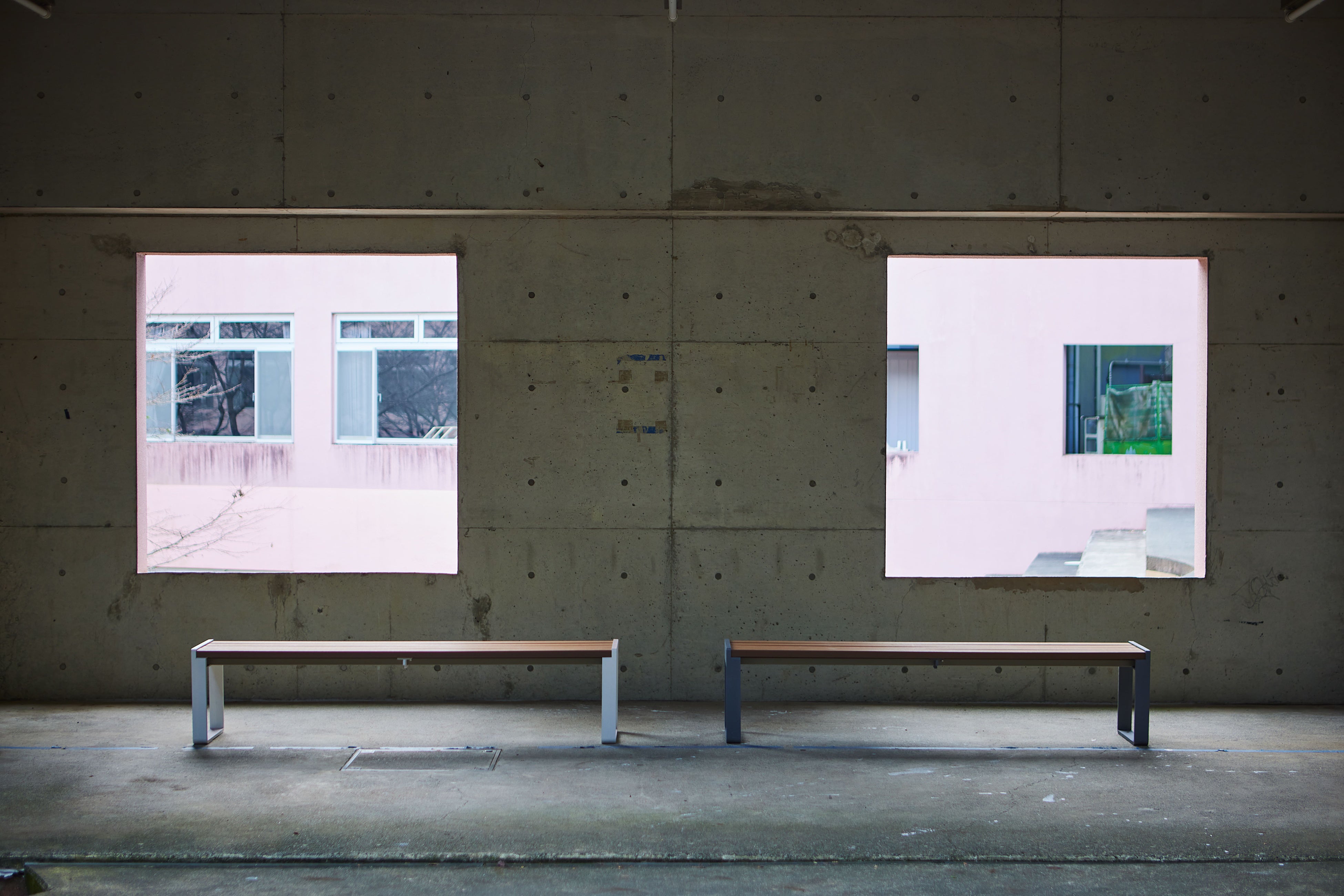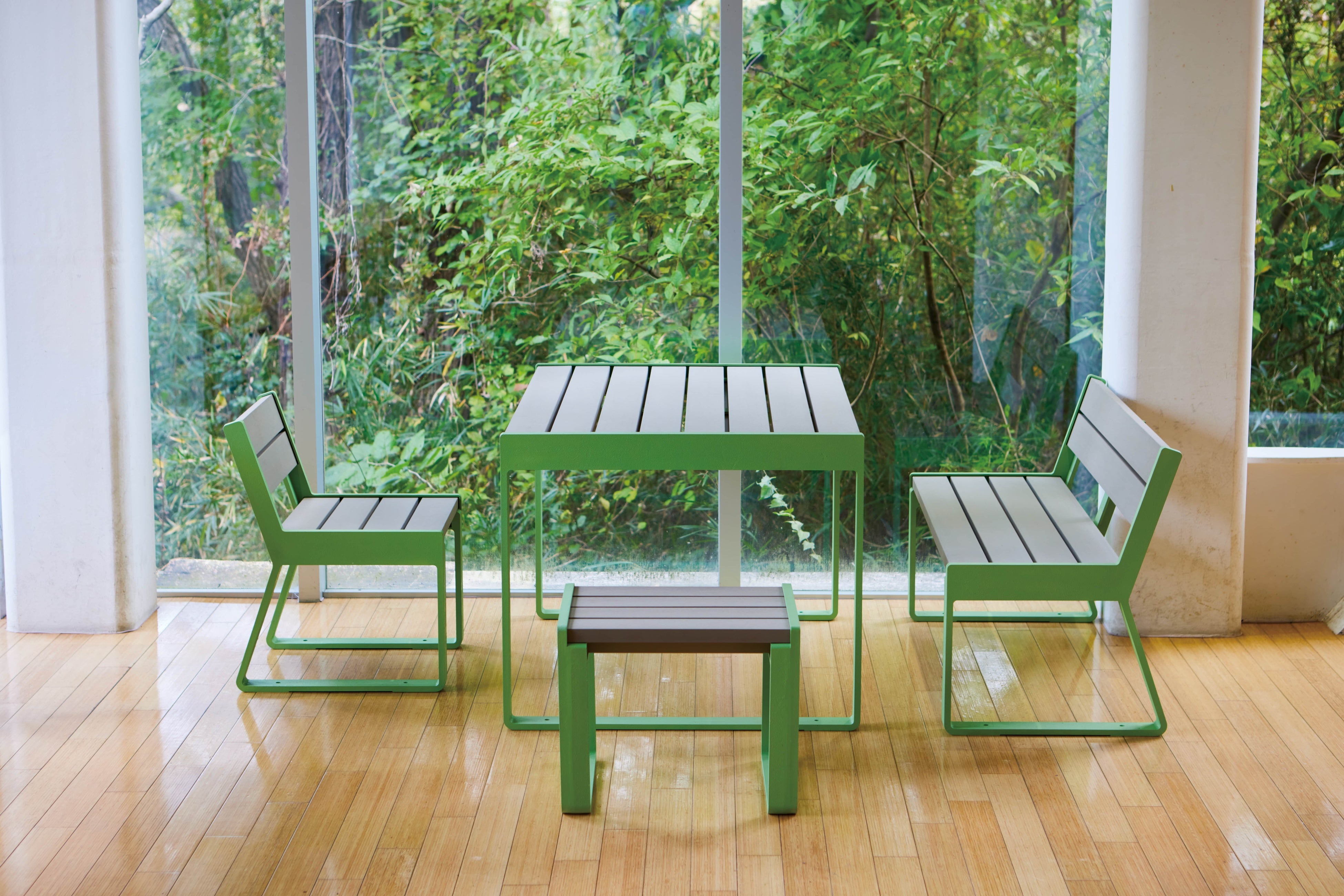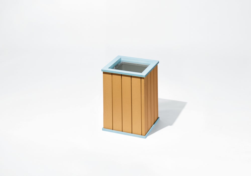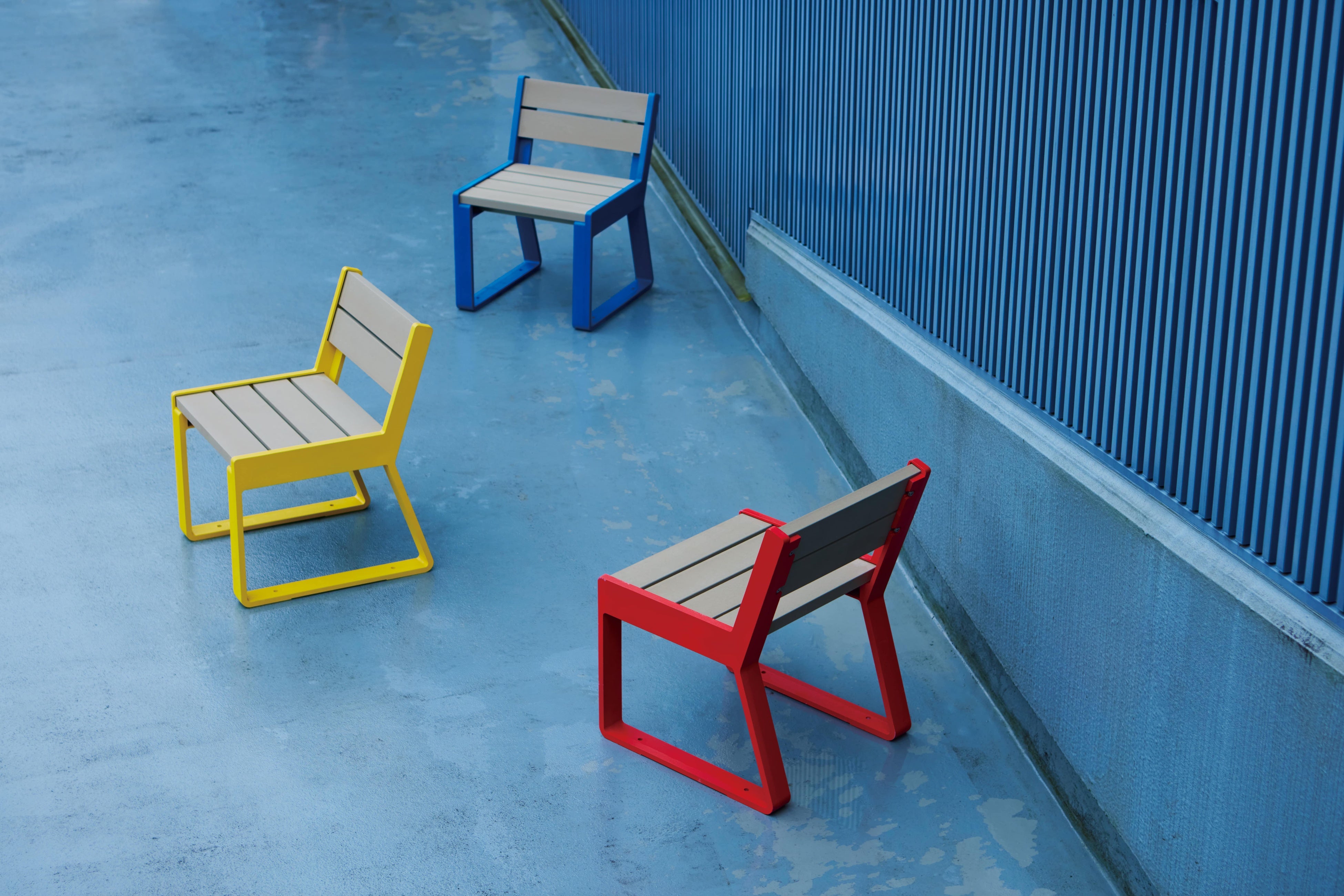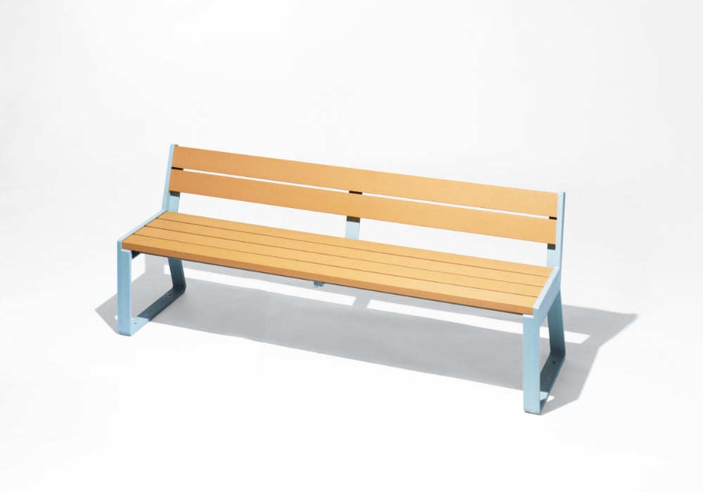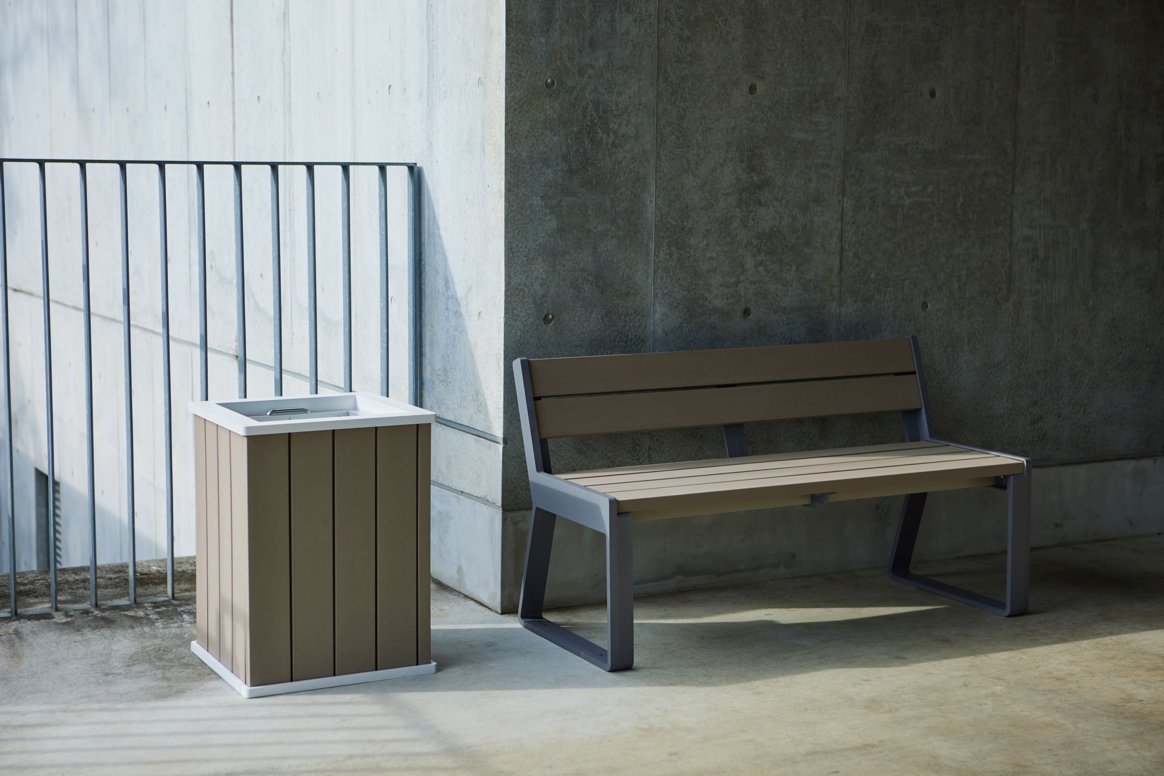 再生木材と、スマートなアルミフレームによるシンプルで機能的な構造は、設置された環境の中で違和感なく調和します。また、見た目に反して屋外家具としての充分な耐久性も備わっており、質実剛健と呼ぶにふさわしいプロダクトです。
