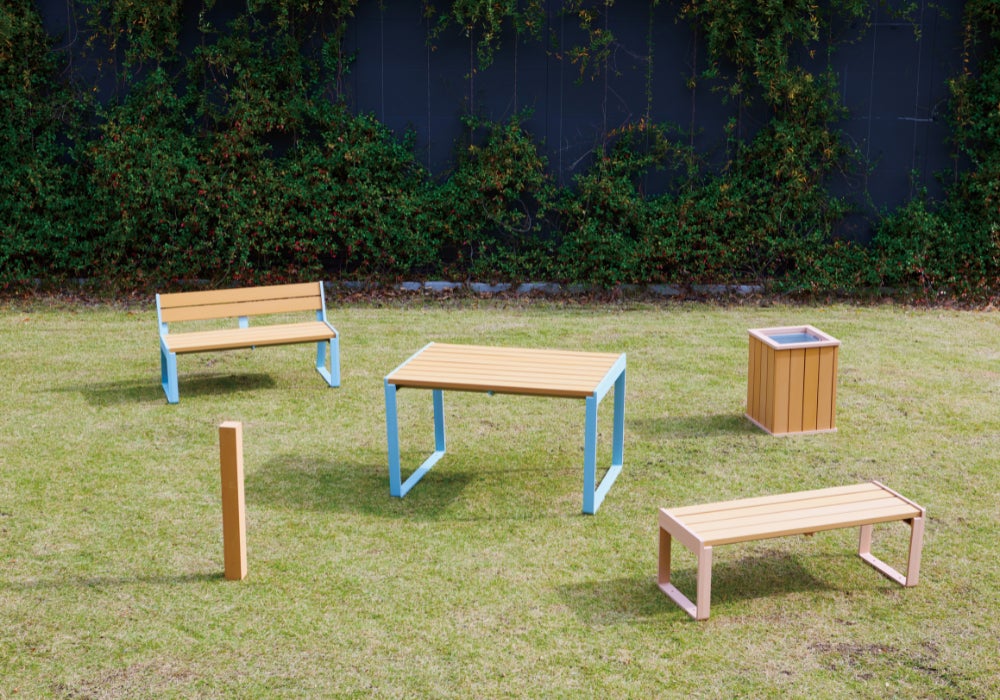 ベンチ、テーブルをはじめとする5種のアイテムを発売。豊富なカラーバリエーションでまちを彩る
