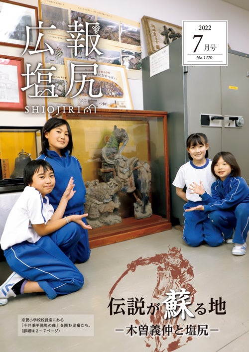 - タイトル 広報塩尻7月号「伝説が蘇る地~木曽義仲と塩尻~」