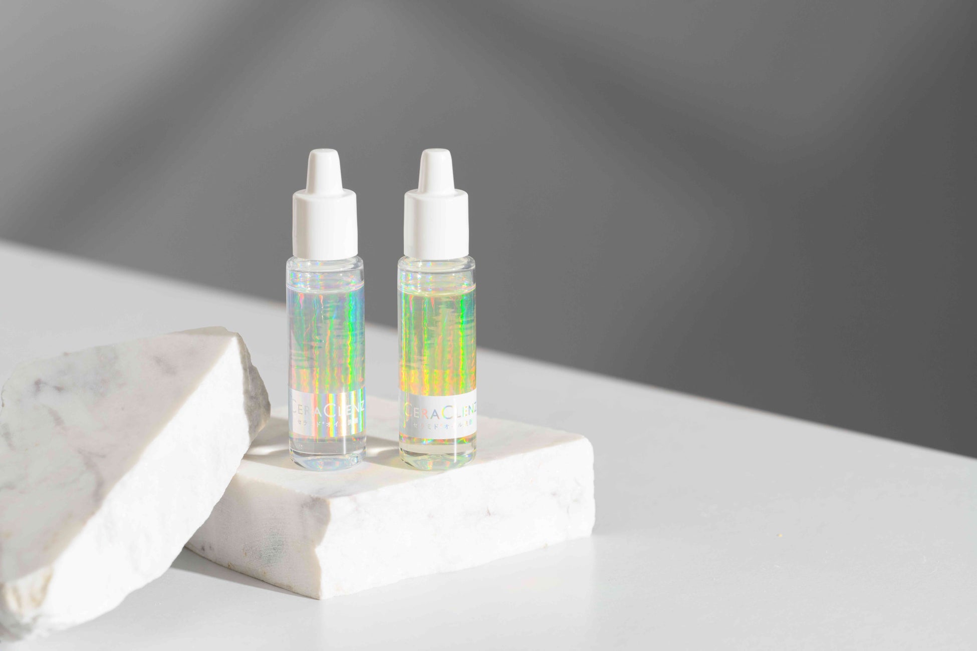 今回、垂れない、塗布しやすいを叶えるために先の尖った点眼容器のような形の容器を採用致しました。また透明性が高いにも関わらず、スクイーズ性を兼ね備えた容器になっております。