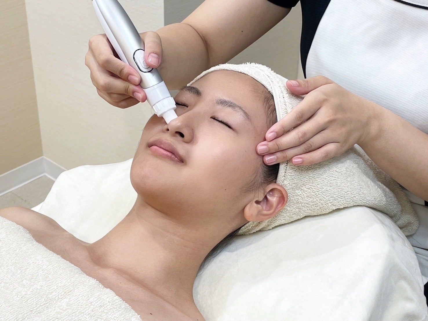 低刺激なので、肌のバリア機能は損なわず、基底層まで徐々に浸透しながら肌の再生を促します。オプションで頭皮への施術も可能で、お顔の引き締め引き上げ効果が期待できます。