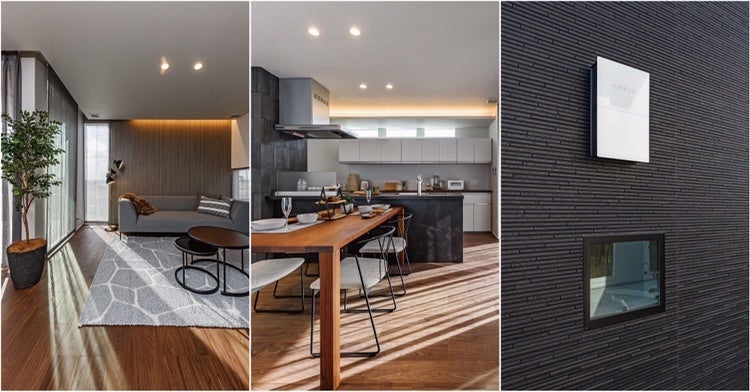 ・特徴:LDKと畳コーナーが隣接し、ウッドデッキともつながった広がりのある空間とともに、全館空調※2を設置していることで24時間365日室温を一定に保つことができ、部屋ごとに温度差が生じないなどの快適性も体感できます。また、太陽光発電とテスラ家庭用蓄電池Powerwall※3を設置したZEH仕様となっており、EV(電気自動車)向け屋外コンセントも装備しております。さらに、電気錠、照明、エアコン、ガス給湯器がインターネットに繋がり、スマートフォンから遠隔操作できるIoT技術を体験できます。