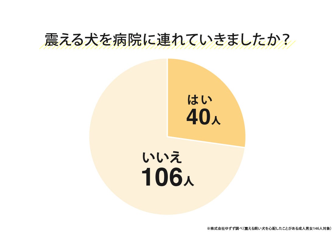 震える飼い犬を心配したことがある成人男女146人のうち、約3割の40人は震える犬を病院に連れていった経験があると答えました。