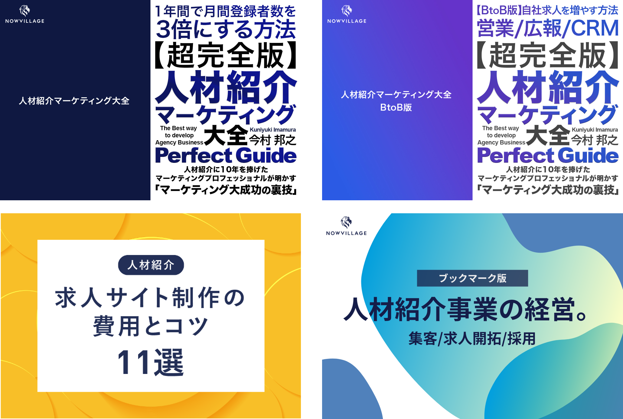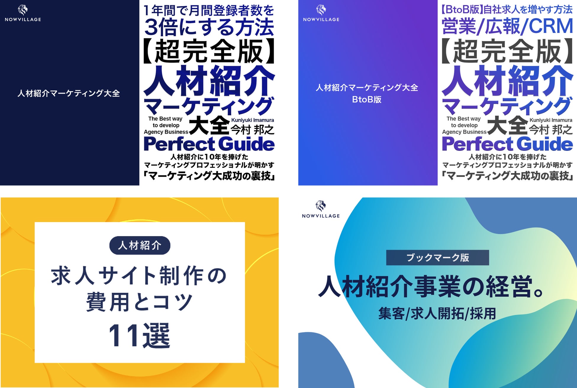 人材紹介事業における求職者獲得や求人獲得、Webサイト制作、経営などについてご覧いただけます。
