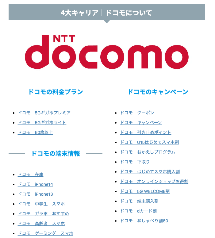 また「最新キャンペーン」「端末情報」「乗り換え方法」など様々な情報も併せて取り扱っております。