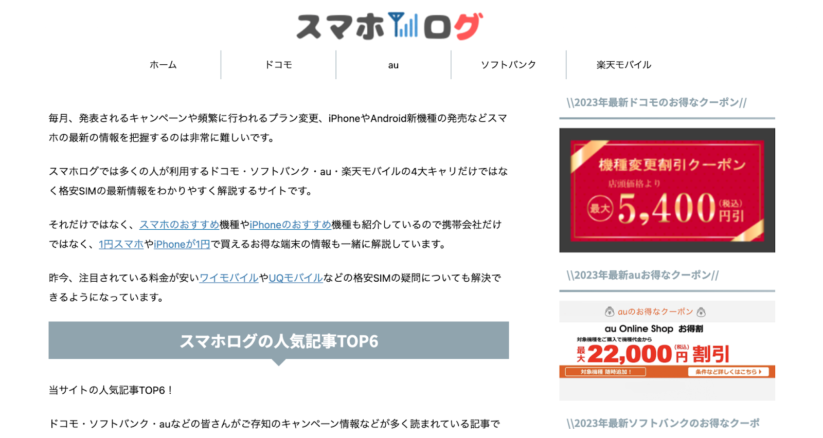 スマホログではドコモ、ソフトバンク、au、楽天モバイルといった4大キャリアといわれる大手通信会社のプラン情報をわかりやすく発信しています。