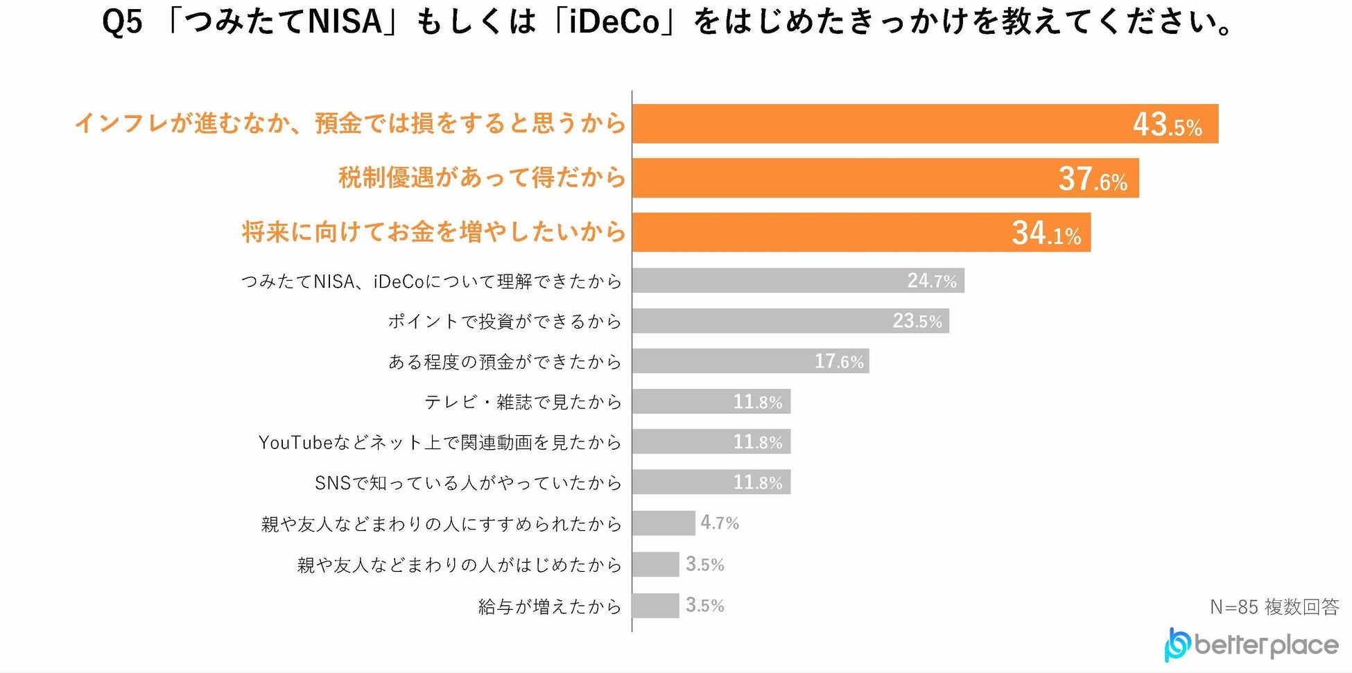 【Q5】Q2で「つみたてNISA」、「iDeCo」を利用していると答えた方にお聞きします。「つみたてNISA」もしくは「iDeCo」をはじめたきっかけを教えてください。