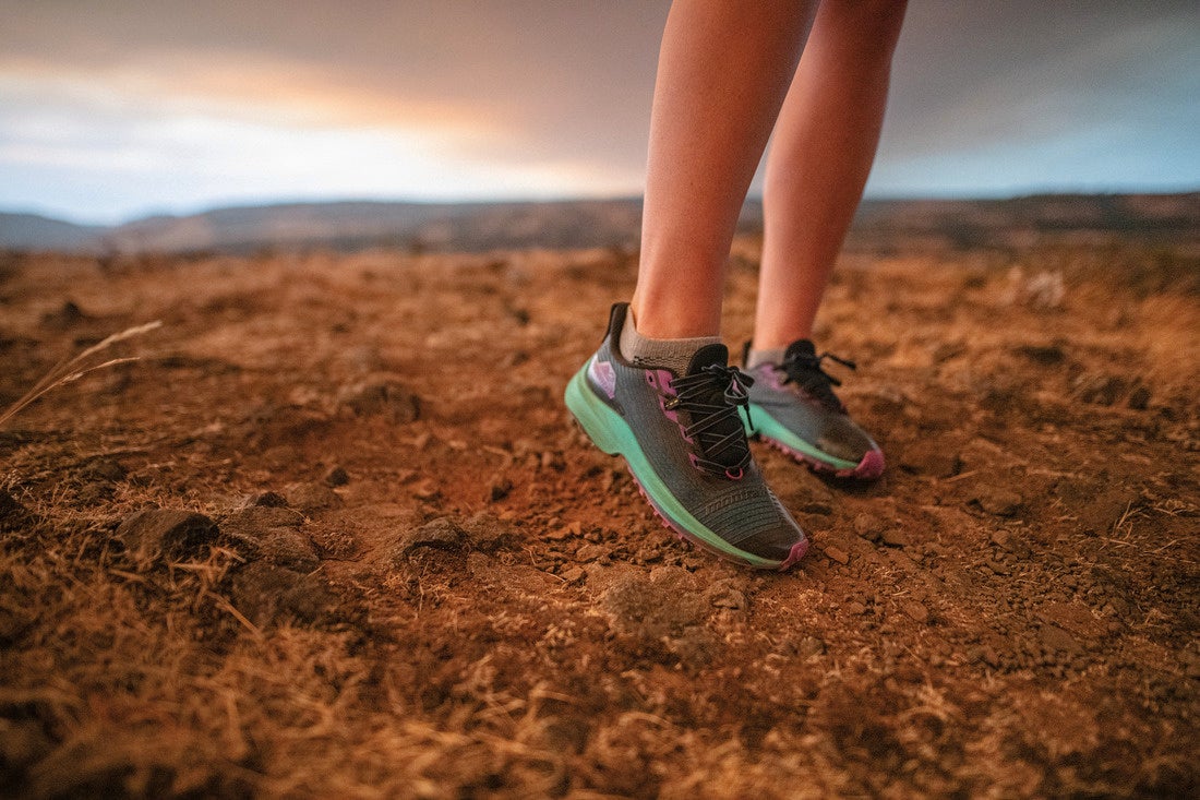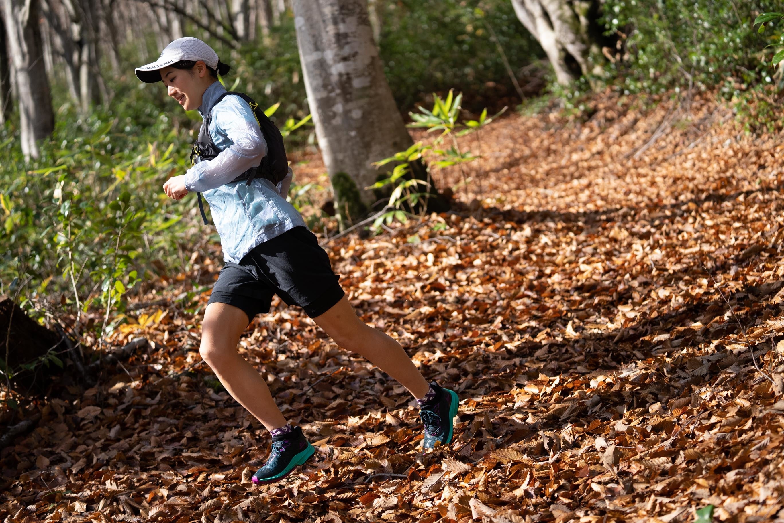 ロングレース向けに設計されているため、クッション性と安定性があり、 足全体を包み込むようなフィット感があります。また、足をスムースに運ぶことのできる推進力が得られる上、軽量なのでロードもトレイルも良い感覚で走ることができました。