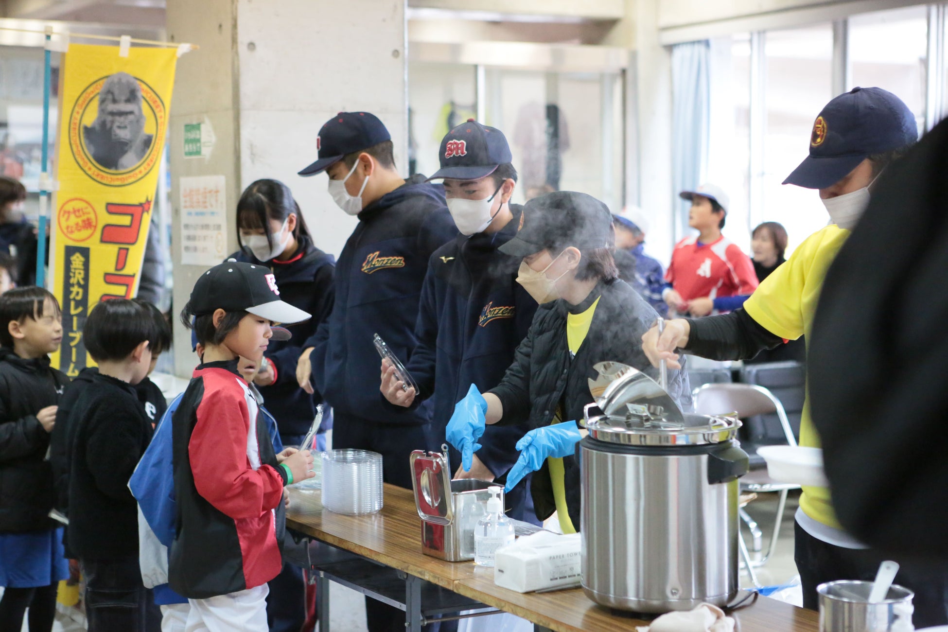 2024年12月8日(日)被災地の子供たちを元気づけようと、読売巨人軍と日本プロ野球選手会が共同企画したイベントへ参加し、輪島市、七尾市、珠洲市、志賀町の計4か所へカレーの炊き出しを実施しました。