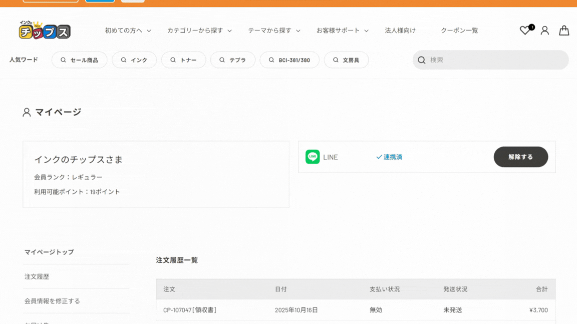 取扱商品:インクカートリッジ、トナーカートリッジ、文具・オフィス用品、PC&スマホ関連商品、生活雑貨