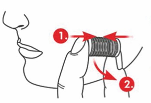 ①人差し指と親指でつまんで接地面にfacyyを当てて毛を掴みます。