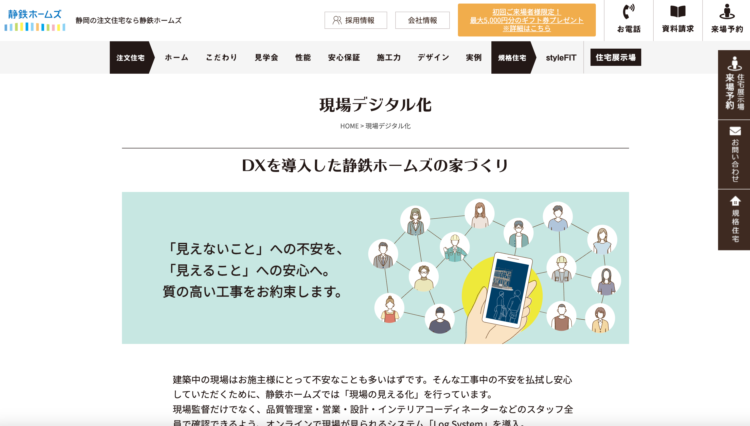 静鉄ホームズ様:HPに掲載されている「現場デジタル化」のページ
