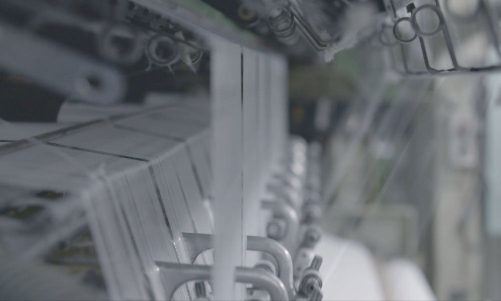 「“想いやり”とは、相手を心で包むこと」という信念のもと、身に着ける人が毎日心地よく過ごせるようとことん素材にこだわり、メディカル発想によってオリジナル素材を生み出すことからスタートしたブランド『丸福ガーゼ』。コンピューター制御された高速機では出せない、ふんわりとやわらかな風合いを出すため、日本に3台しかない編み機を使って丁寧に編み上げた生地を使って製品を作り出しています。