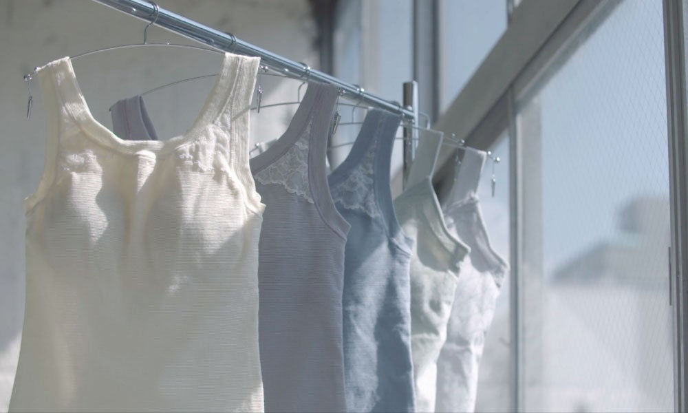 『丸福ガーゼ』の製品は、なるべく肌に縫い目が当たることや締め付けによる不快感、着用痕による痒みが出ないよう設計されています。なかでも代表作のショーツは、ウエストや脚周りにもゴムを一切使っていないノンゴム仕様で、まるで履いていないかのような着用感です。また、ストレッチ性がよく肌に沿ってやさしくフィットするタンクトップもストレスフリーな着心地です。