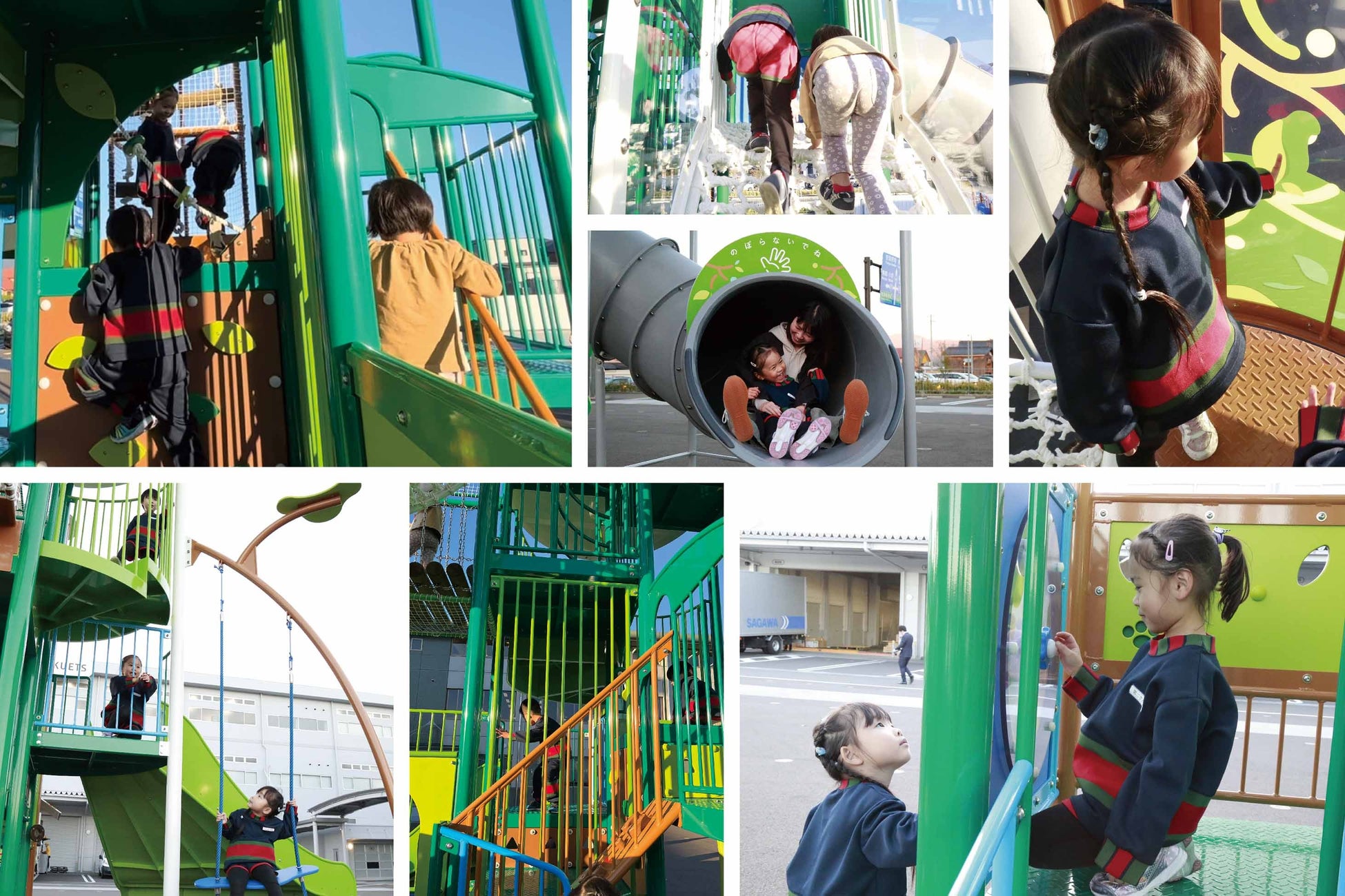 また、今までの遊具では機能性を増やすとそれに伴い出幅も大きくなり、設置面積の問題で納入ができないこともありました。しかし、HIGHKは高さ7メートル以上の大型遊具でありながら、出幅は5.3メートルと弊社規格品の類似品と比べて約1.2メートル短くコンパクトなサイズになっています。子どもたちの成長を促す仕掛けに加え設置者や保護者にとっても魅力的な要素が詰まった今までにない新しい遊具となっています。